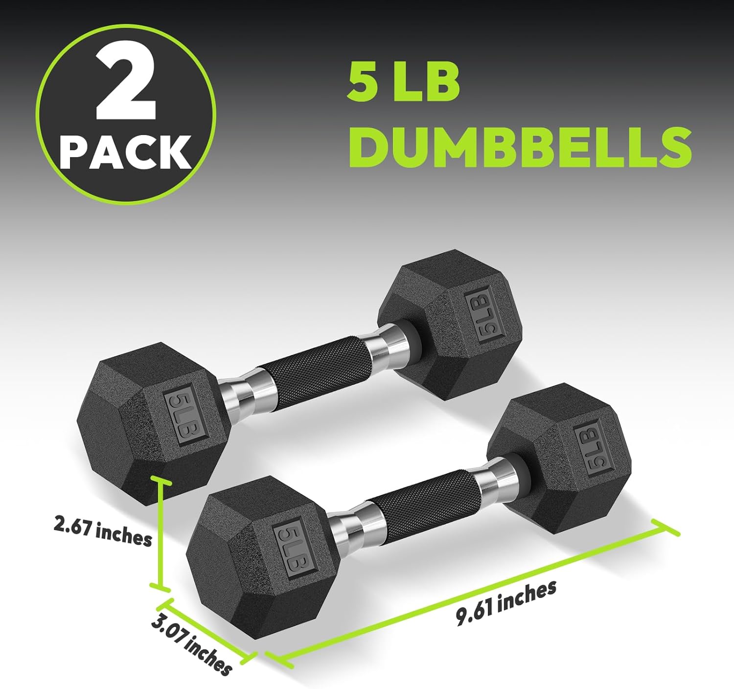 - Premium Construction & Durability: Includes a pair of 5 lb dumbbells made from solid cast iron and encased in high-quality virgin rubber, these dumbbells resist cracking, fading, and protect both floors and equipment.