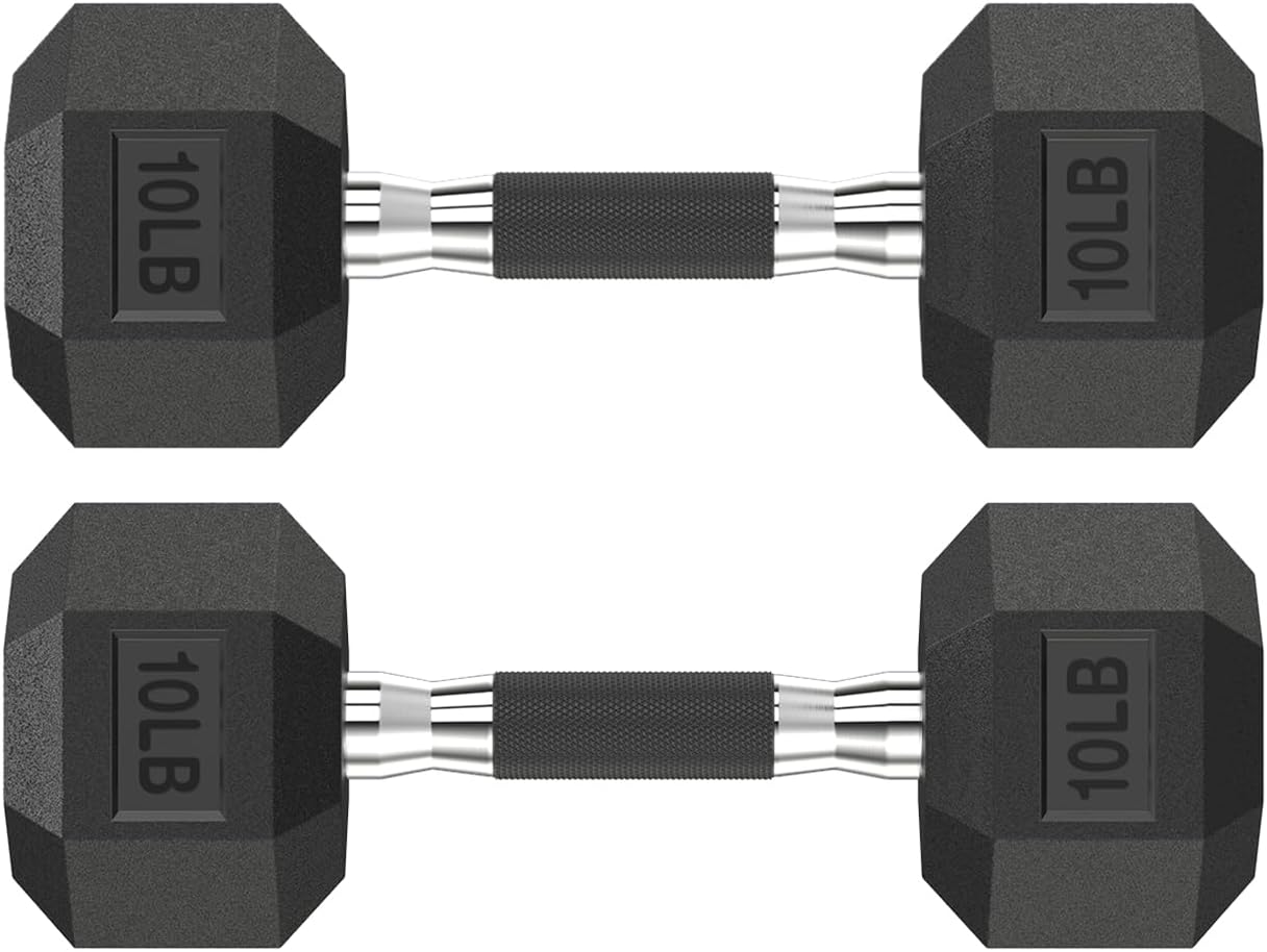- Premium Construction & Durability: Includes a pair of 10 lb dumbbells made from solid cast iron and encased in high-quality virgin rubber, these dumbbells resist cracking, fading, and protect both floors and equipment.