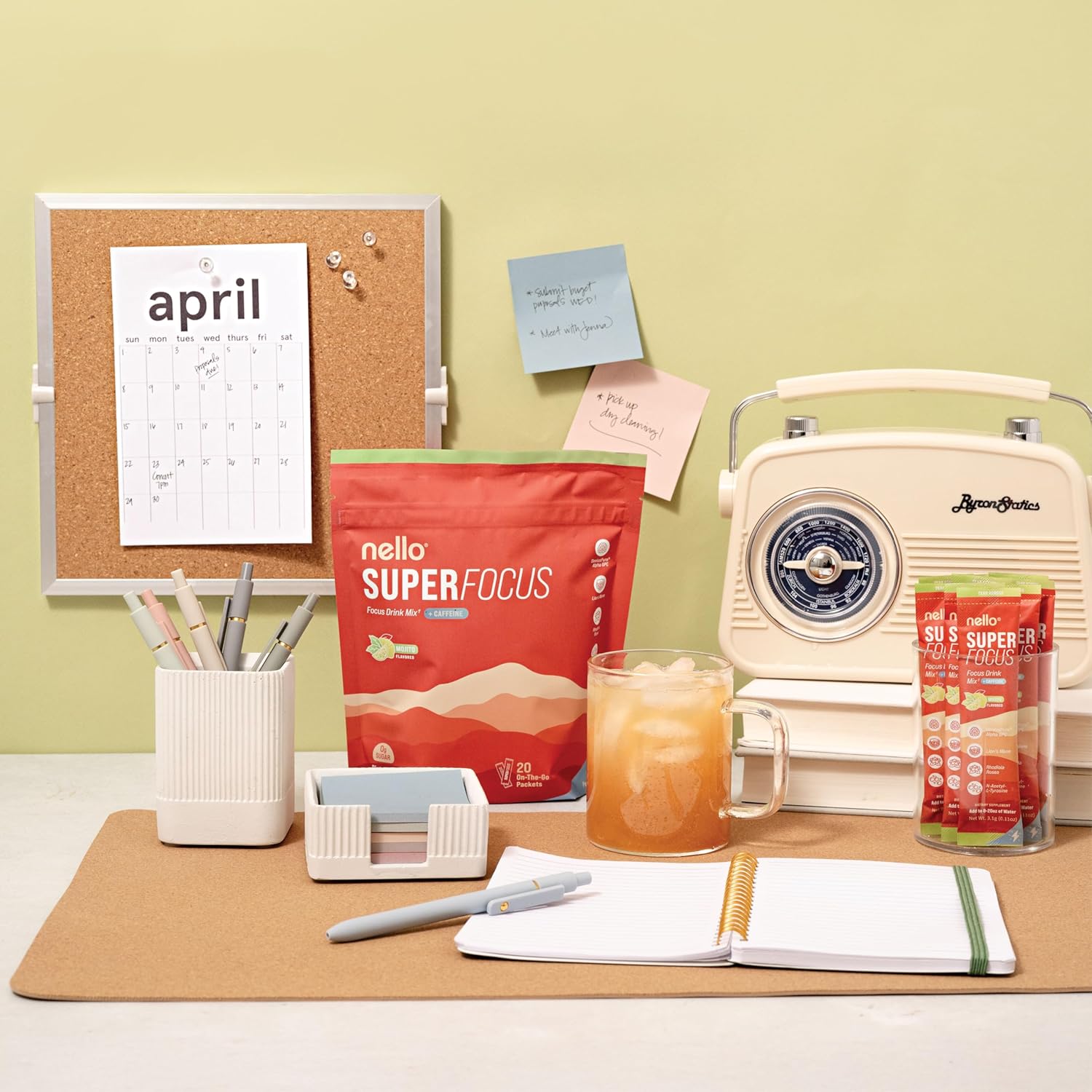 SuperFocus Mojito with Caffeine– Nootropic Focus Drink Mix, 20 On-The-Go Packets, Alpha GPC, Lion’s Mane, Rhodiola, Sugar-Free