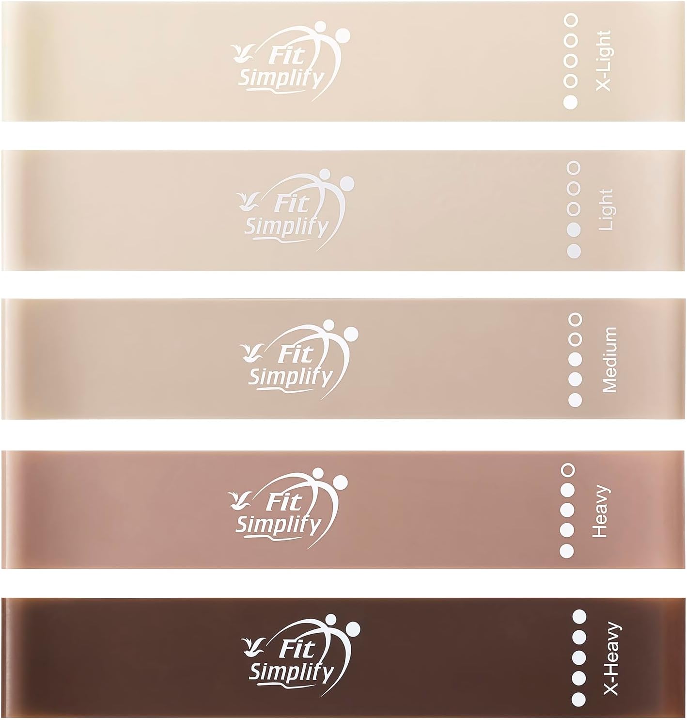 Fit Simplify Resistance Loop Exercise Bands with Instruction Guide and Carry Bag, Set of 5