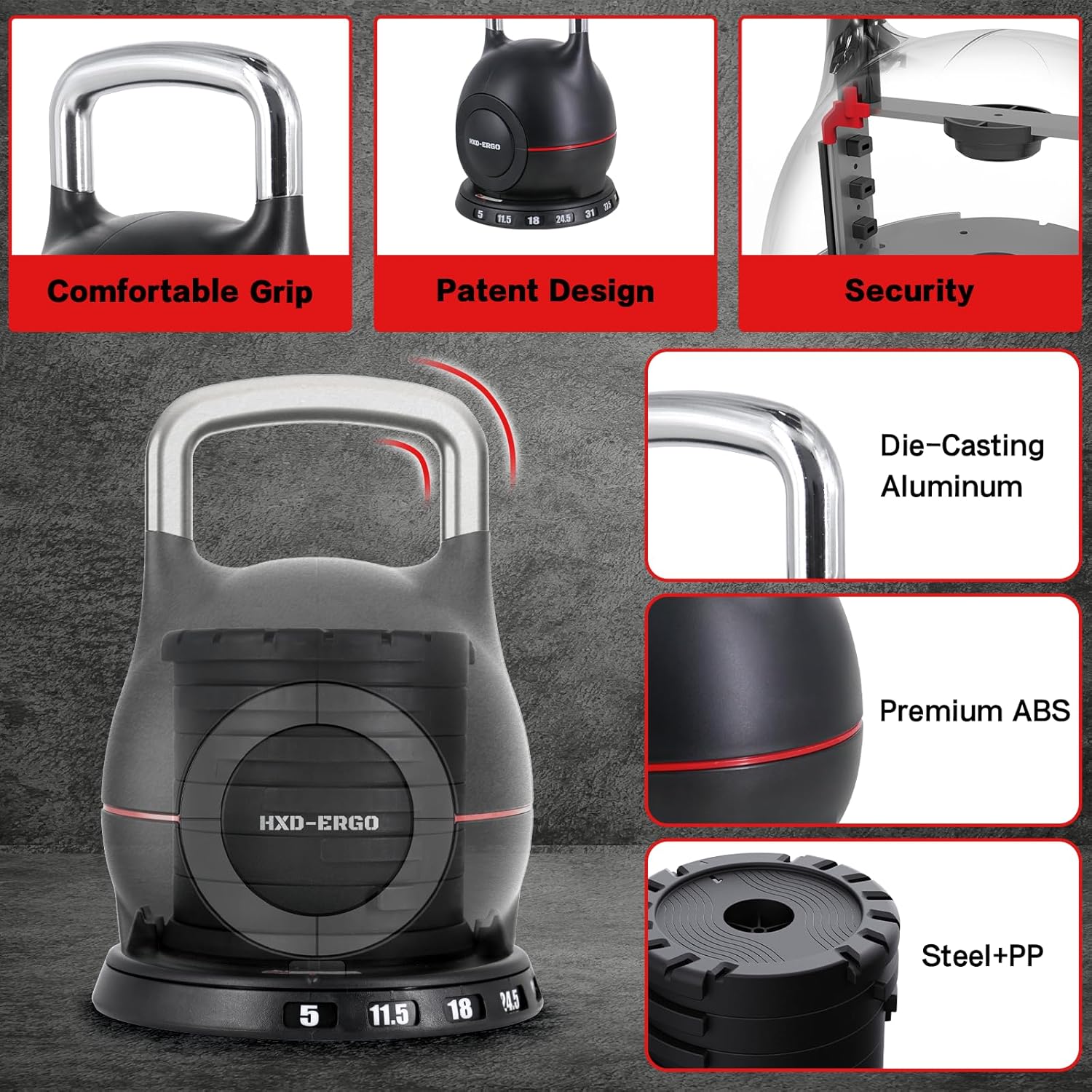 - Safety Without Shaking: HXD ERGO Adjustable Kettlebell adopts compact structure design, even in the process of kettlebell shaking, lifting, throwing and other movements do not need to worry about shaking