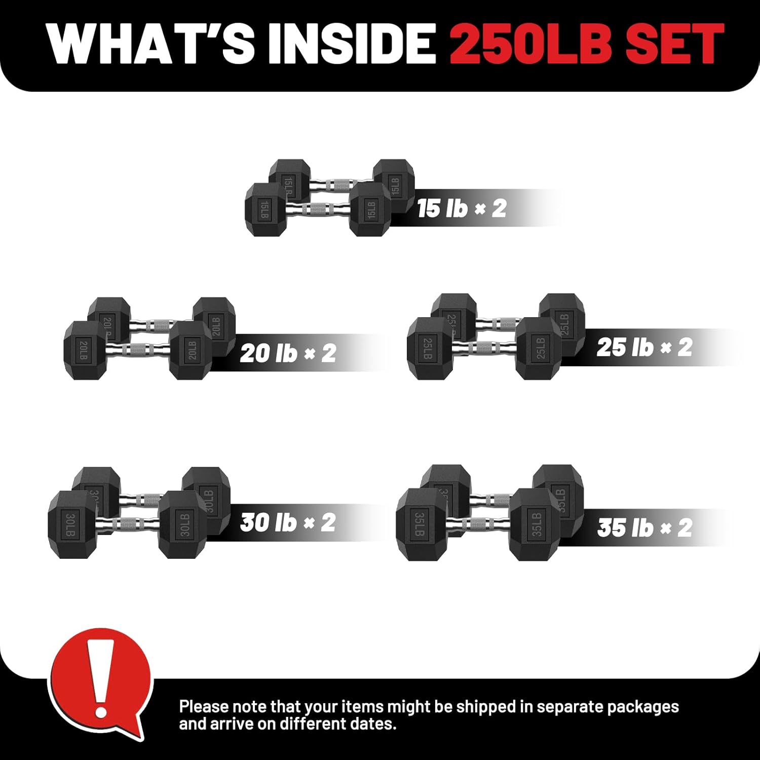PAPABABE Hex Dumbbell Set 45-550 lb, Rubber Encased Home Gym Dumbbells, Weights Dumbbells for Women & Men, Hand Weight for Strength Training