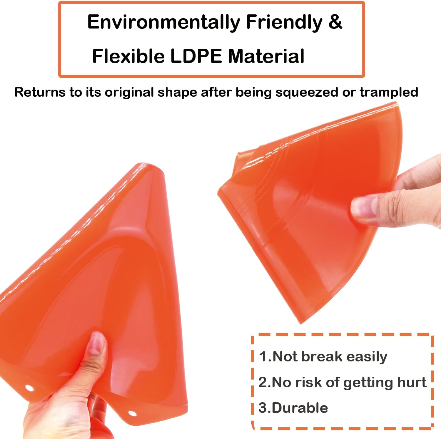 - FLEXIBLE MATERIAL: The cones for sports are made of strong and flexible PP material,all the small cones for sports can retract into their original shapes even if they get trampled on or squeezed