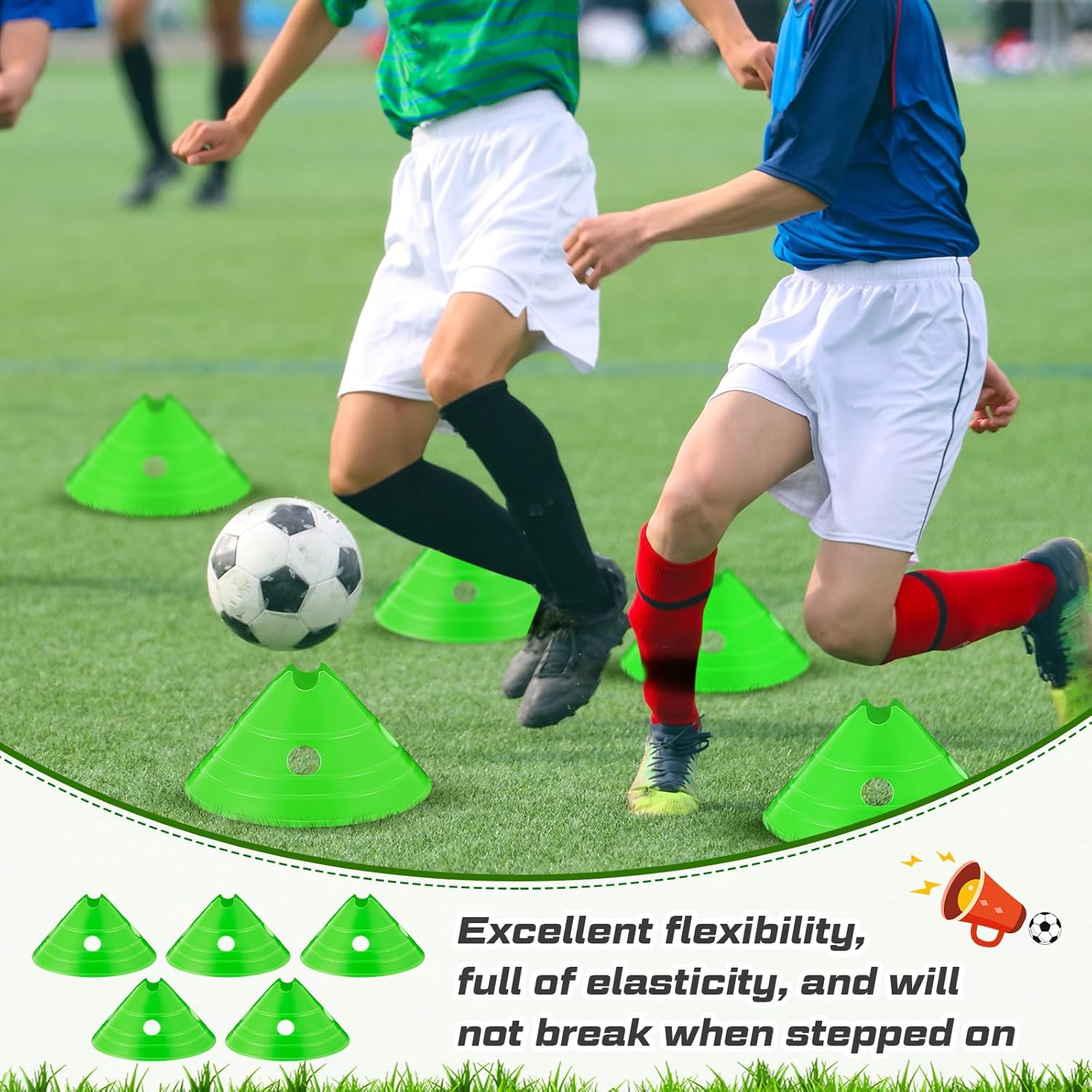 - Package and Portability: the large soccer cones set contains 20 pieces in green color; It additionally incorporates a mesh bag, assisting you in maintaining cleanliness, organized storage, and easy transport