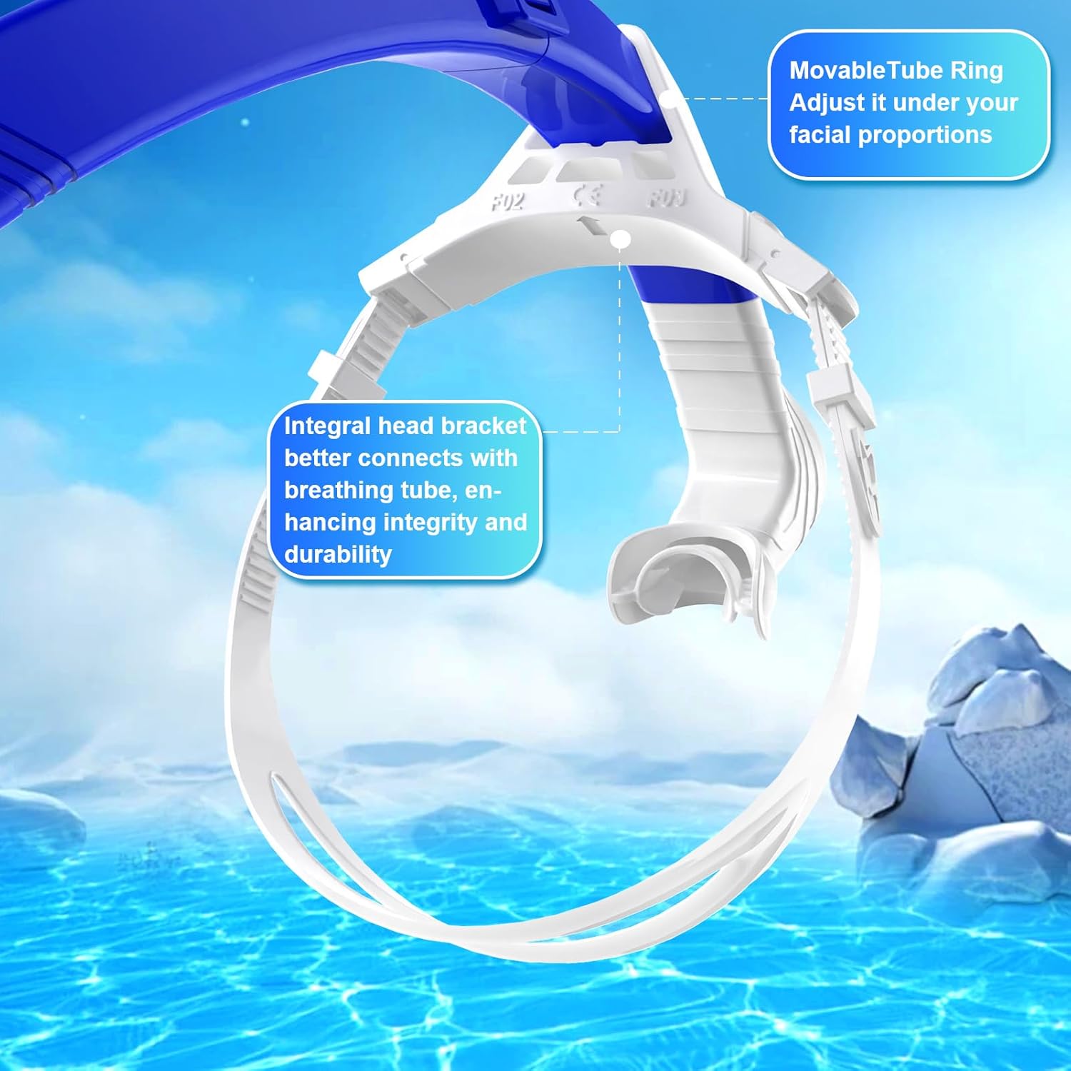 - 【Swimming snorkel for ultimate comfort】Food grade silicone bite fits perfectly in your mouth without foreign body sensation. Adjustable headband and thick silicone head-pad ensure comfortable wearing, effectively eliminating headaches and squeezing sensation.Streamlined hydrodynamic design minimizes water resistance and allows swimmers to swim effortlessly