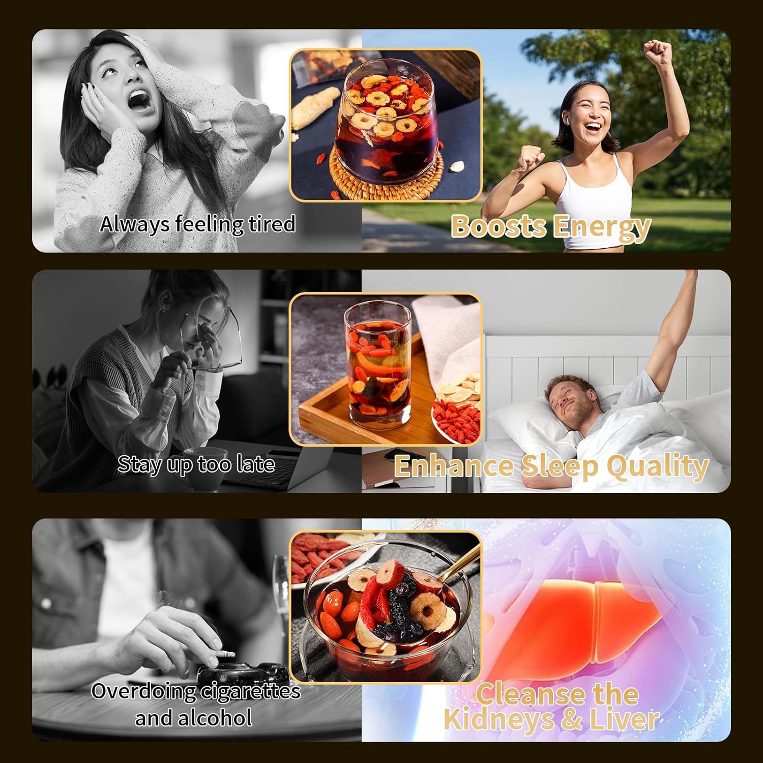 - Powerful Herbal Blend for Vitality: Formulated with ginseng, maca, goji, red date, and yam, this kidney tea formula supports energy, immunity, and hormone balance—perfect for men and women