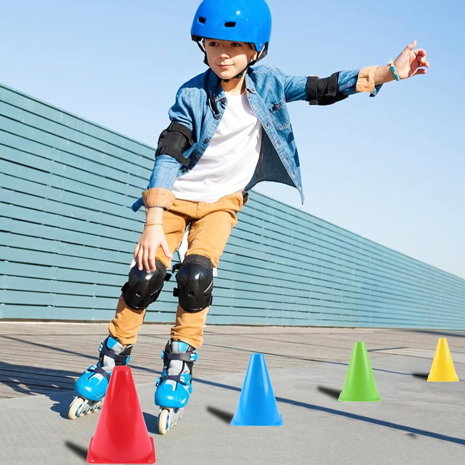 - Multipurpose: The sport cone set can be used for an assortment of indoor and outdoor activities, such as drills training at soccer, basketball, baseball, games at themes parties and festive events, kids play, skating play, bicycle obstacle course, motorcycle training, race RC cars, parking and maneuverability practice, racetrack marking, dog training, horse training. Designed for use on any flat level surface, such as grass, gravel, pavement, concrete, gym floors,cement,artificial turf and more