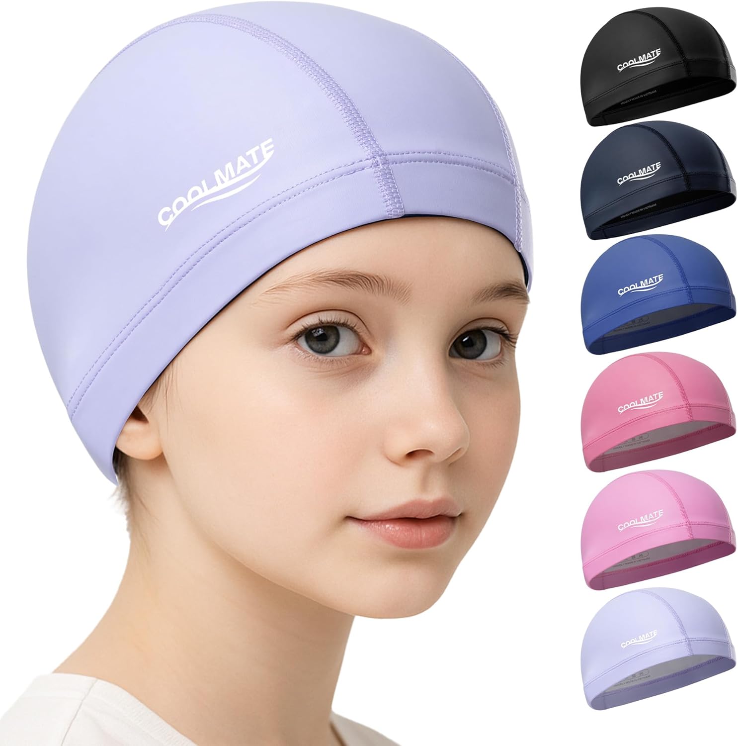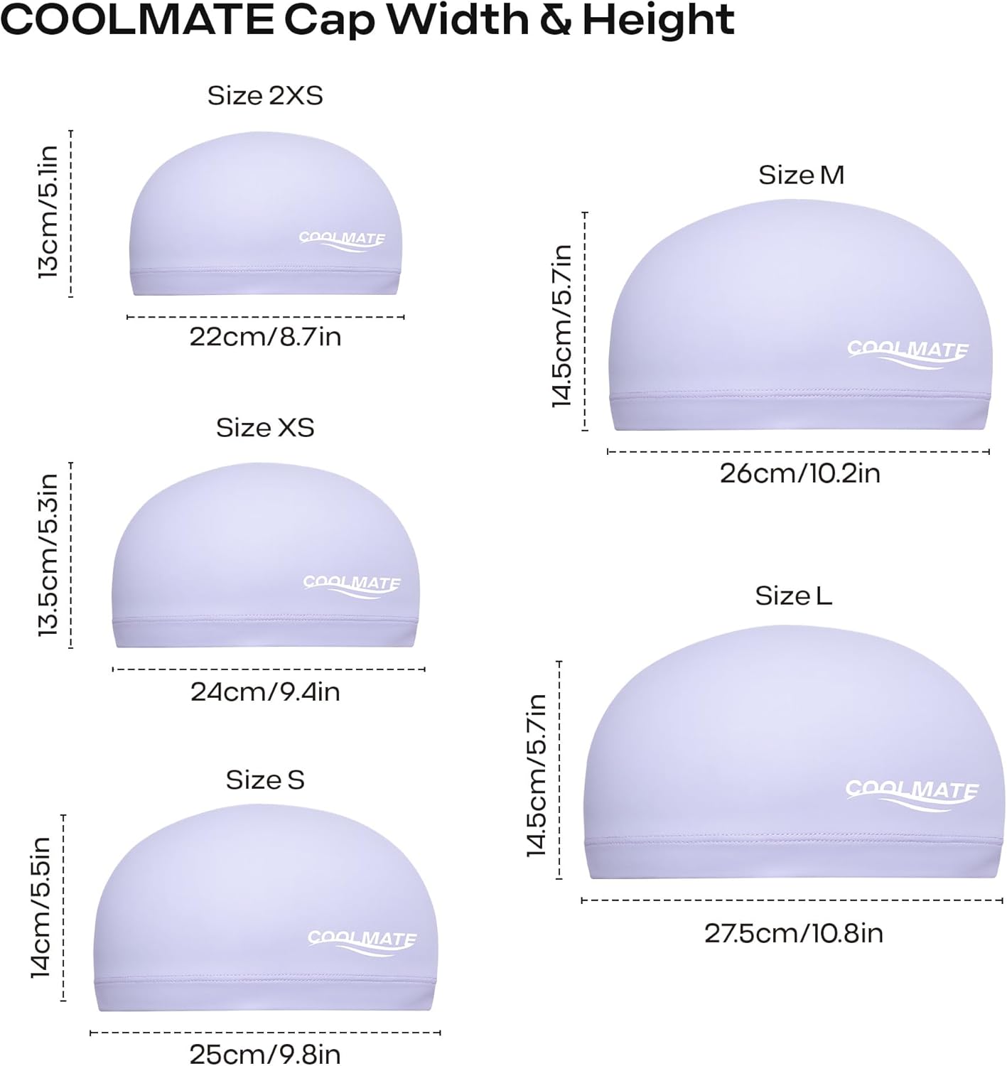 COOLMATE Fabric Swim Cap for Adult Women Men Kid 3 4 6 8 14 16, Silicone Water Resistant Layer, Cloth Swim Cap Gifts for Swimmers, Lightweight for Pool, Lap Swimming (1 pc)