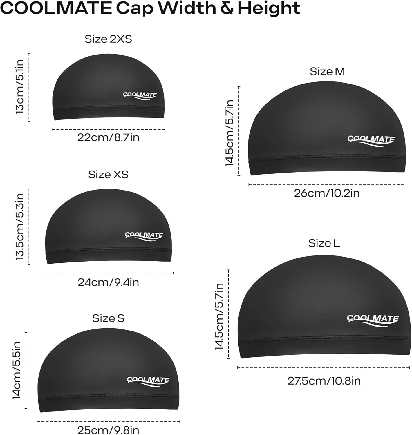 COOLMATE Fabric Swim Cap for Adult Women Men Kid 3 4 6 8 14 16, Silicone Water Resistant Layer, Cloth Swim Cap Gifts for Swimmers, Lightweight for Pool, Lap Swimming (1 pc)