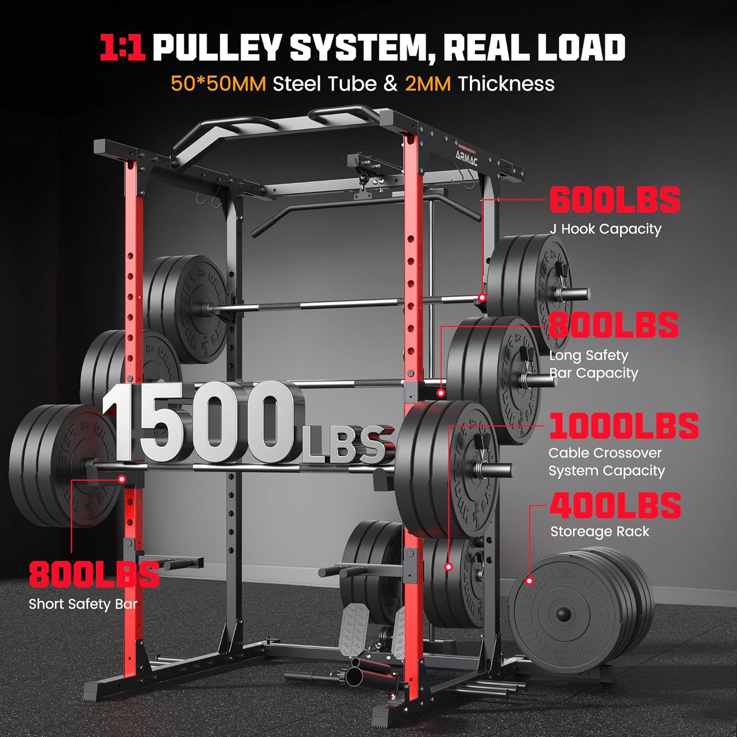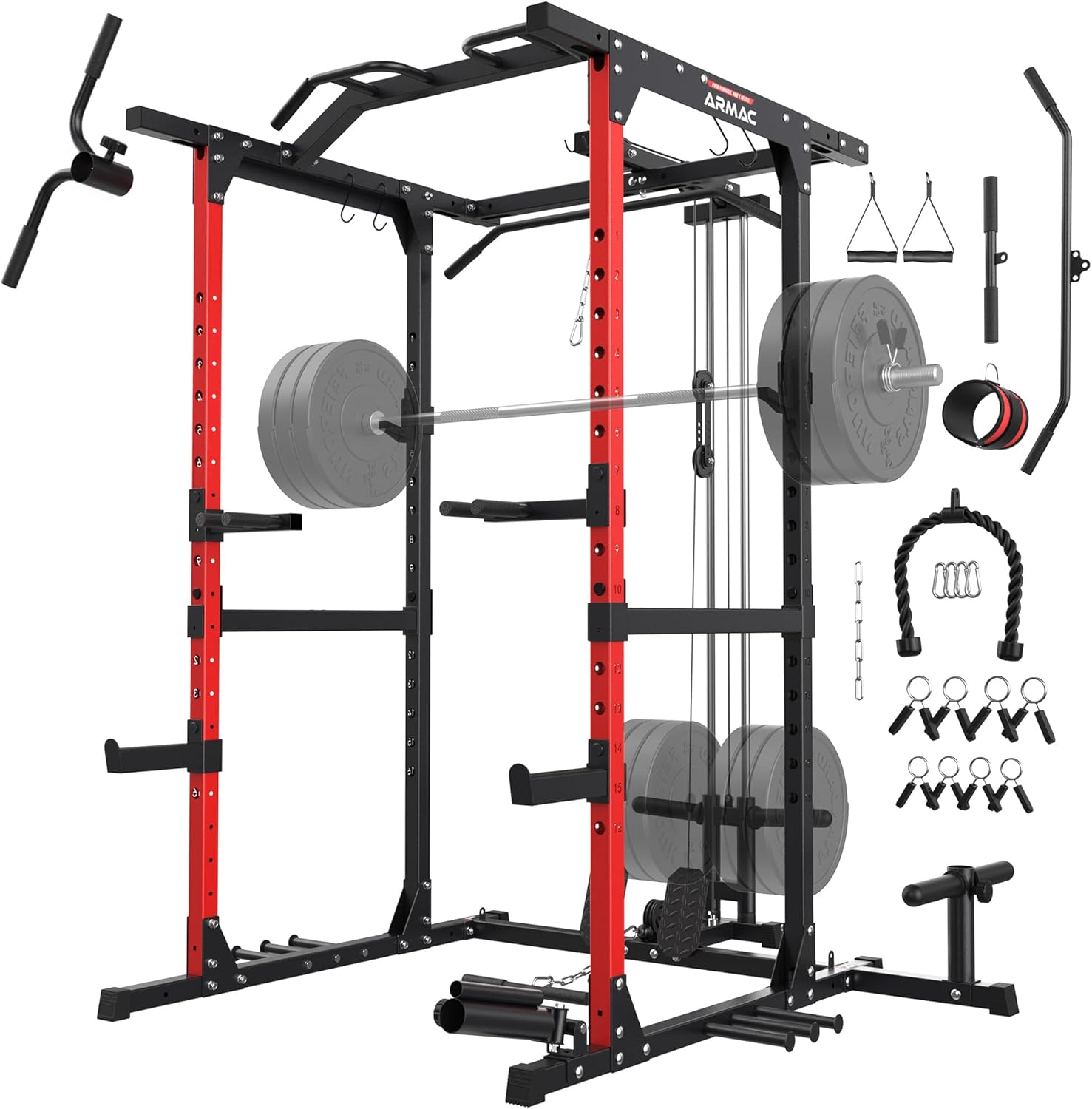 ARMAC Power Cage,1500lbs Multi-Function Power Rack with Adjustable Cable Crossover System and More Training Attachment, Weight Cage for Home Gym