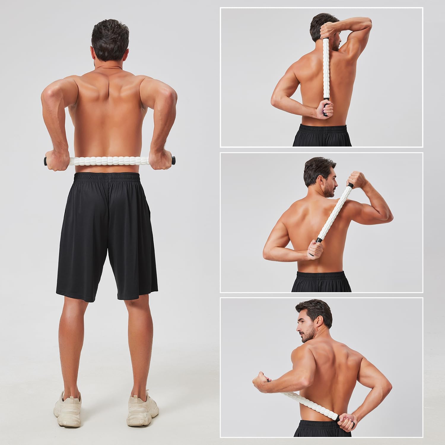 Muscle Roller Stick, Massage Stick for Full Body Relaxation, Relieves Muscle Soreness, Tension, Stiffness, for Shoulders, Neck, Back, Legs, Arms, Deep Tissue Massager(Black White - 24 inch)