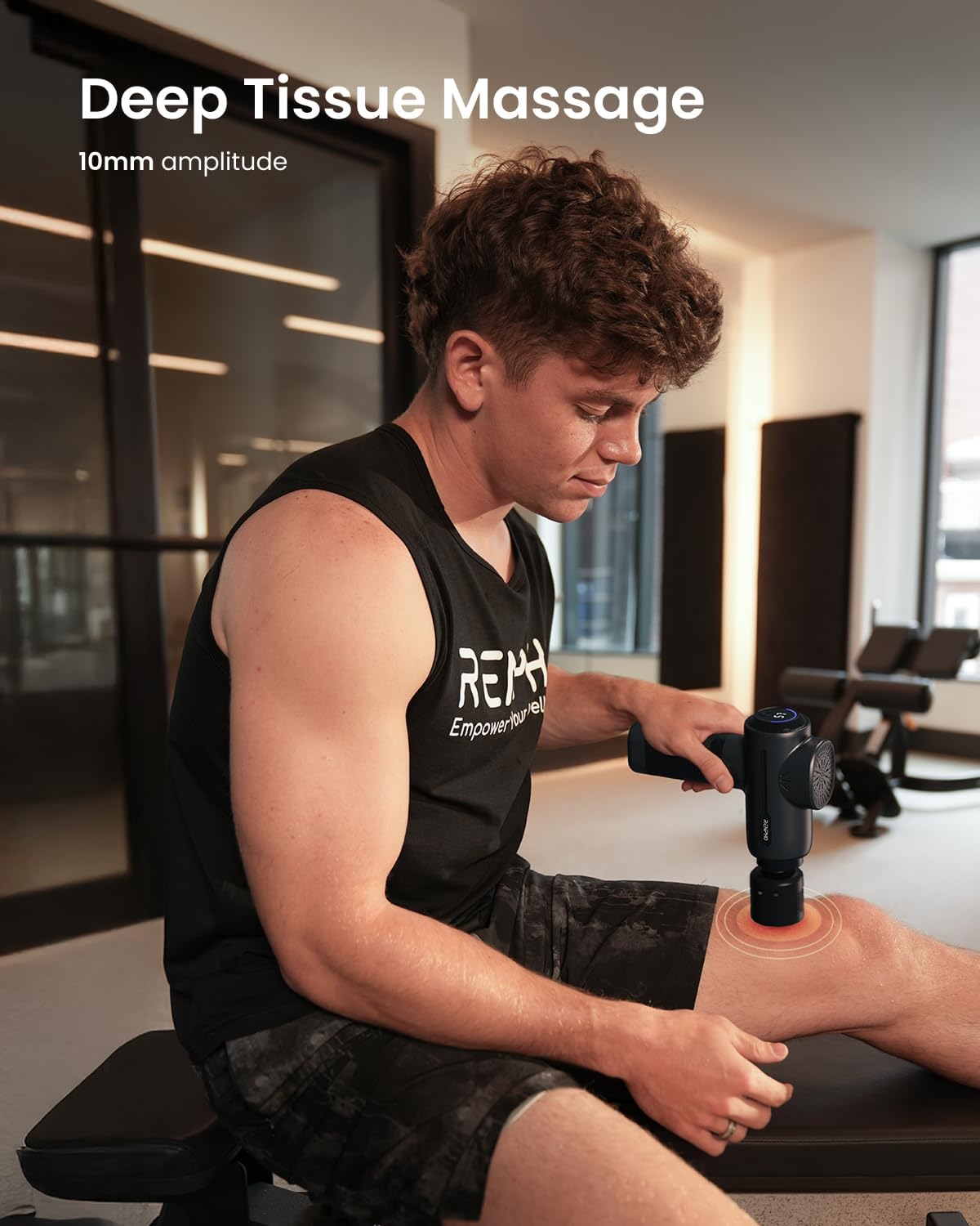 - 5 Speed Levels & LED Display: The LED display keeps you informed of 5 speed levels, and battery percentage. Plus, a 10-minute auto-off function prevents overuse, ensuring you can use the massage gun with peace of mind