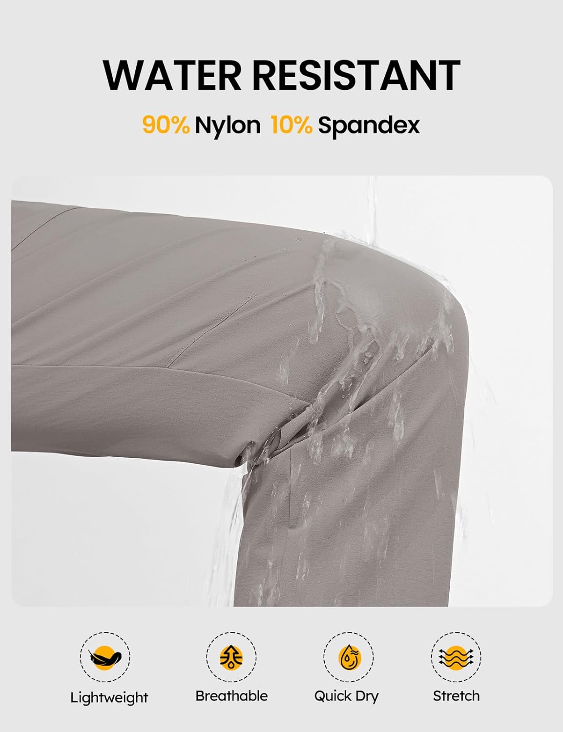 - Lightweight 4-Way Stretch Fabric: Comfortable, water-resistant and quick dry. Combines tear-resistant durability with all-day flexible comfort for non-stop movement