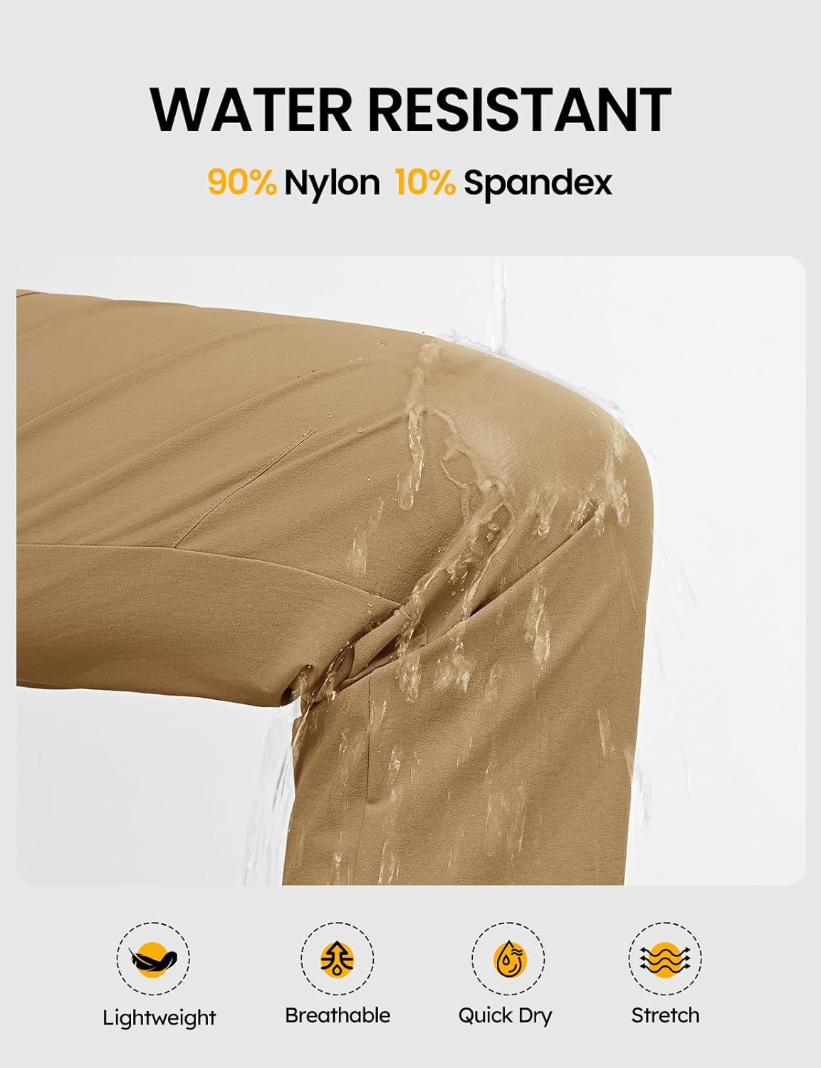 - Lightweight 4-Way Stretch Fabric: Comfortable, water-resistant and quick dry. Combines tear-resistant durability with all-day flexible comfort for non-stop movement
