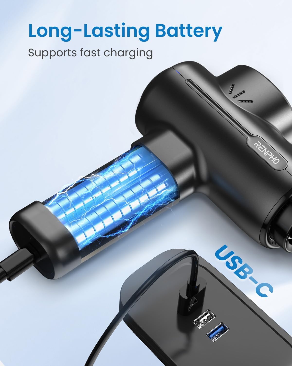 - Smart Massage Gun: Connect to the RENPHO Health App via bluetooth, you can control massagers' speed through the App. Professional video courses from the App provide a visual guide for specific muscle groups to warm up or post workout recovery