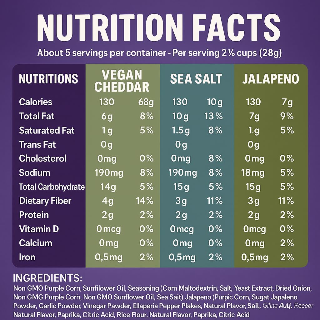 - Made With Premium Purple Corn: A unique, naturally vibrant popcorn made from purple corn, bringing you bold flavor and wellness.