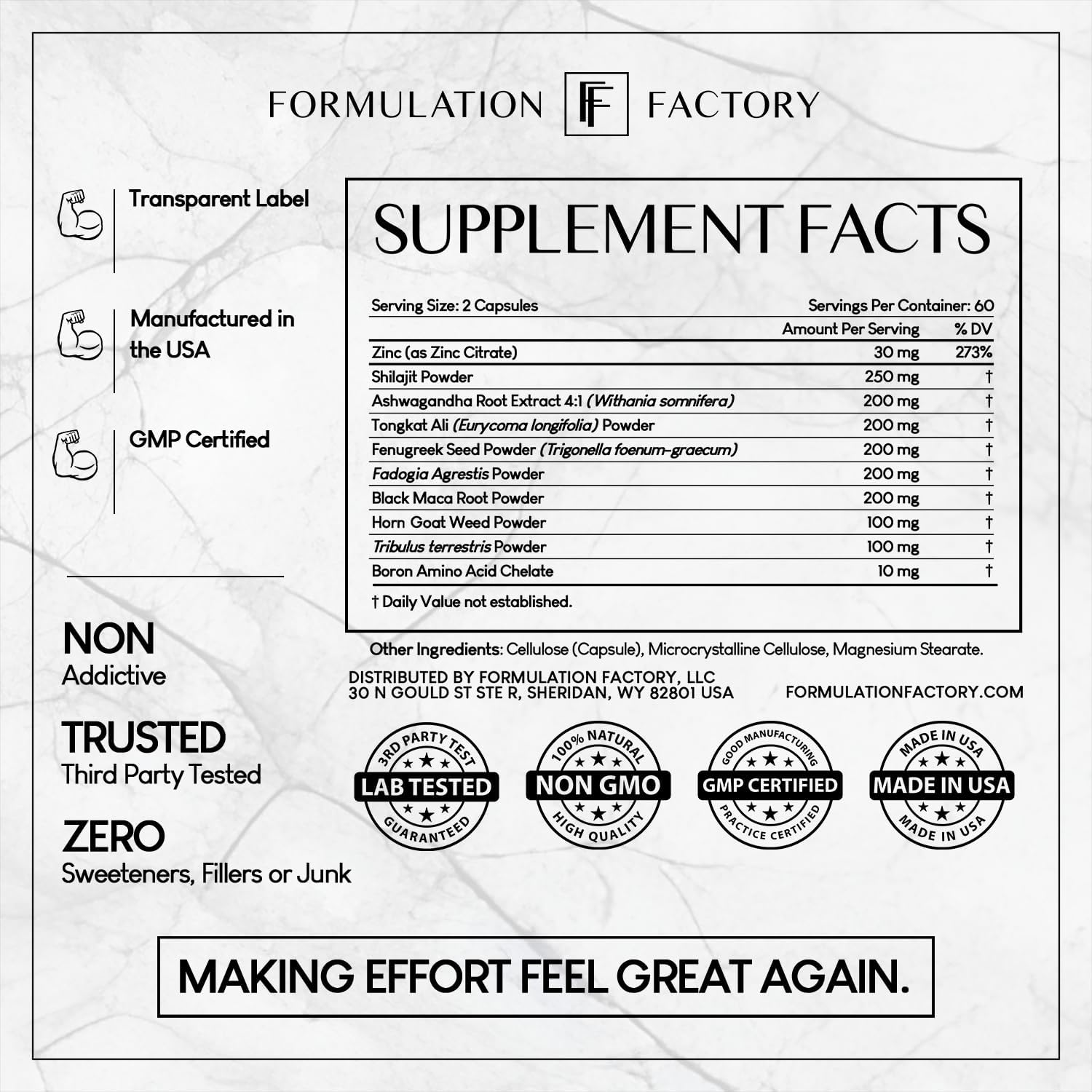 - Maximize Strength & Energy β Self Obsessed is loaded with Shilajit, Tongkat Ali, Ashwagandha, and Fenugreek to boost vitality, muscle growth