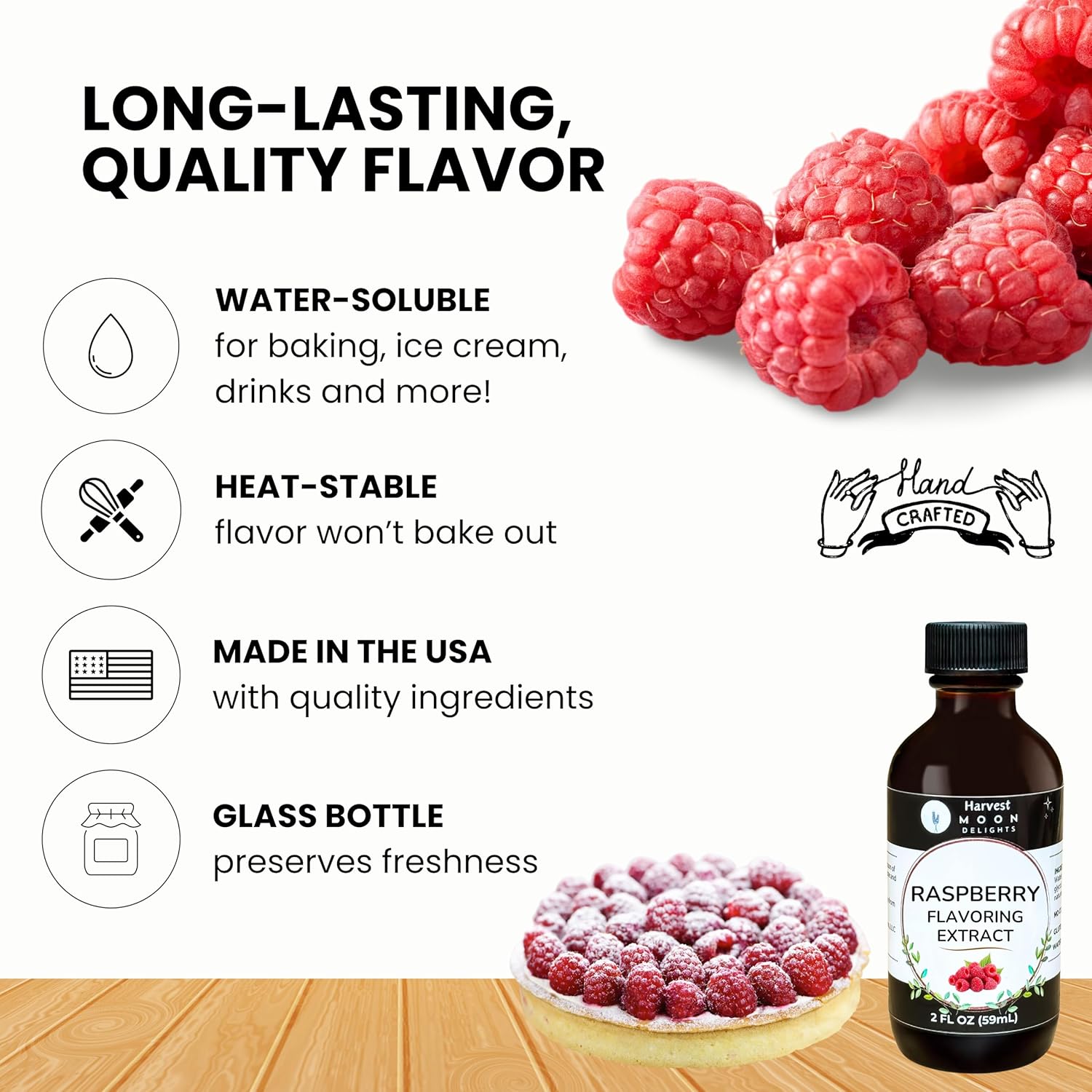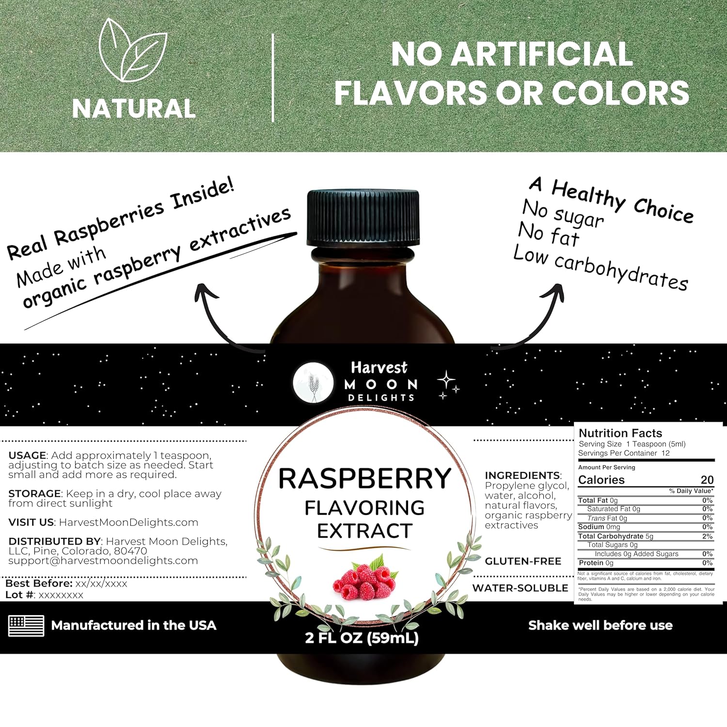 - YOUR PACKAGE INCLUDES: A 2 oz glass bottle of premium, water-soluble natural raspberry flavor, crafted with quality ingredients right here in the USA.