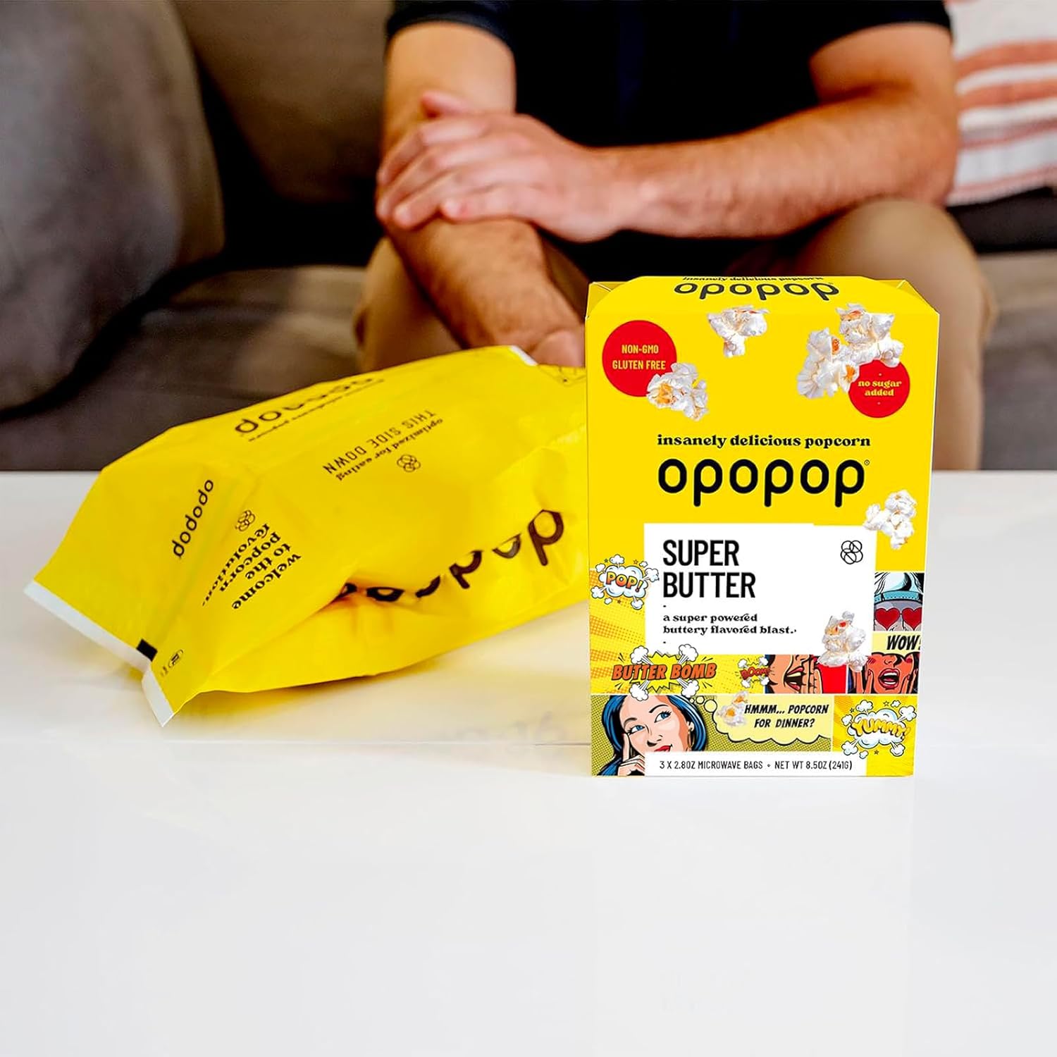 Opopop Microwave Popcorn - Super Butter 2.8 oz., 9-Count - Butter Popcorn, Flavored Popcorn, Non-GMO