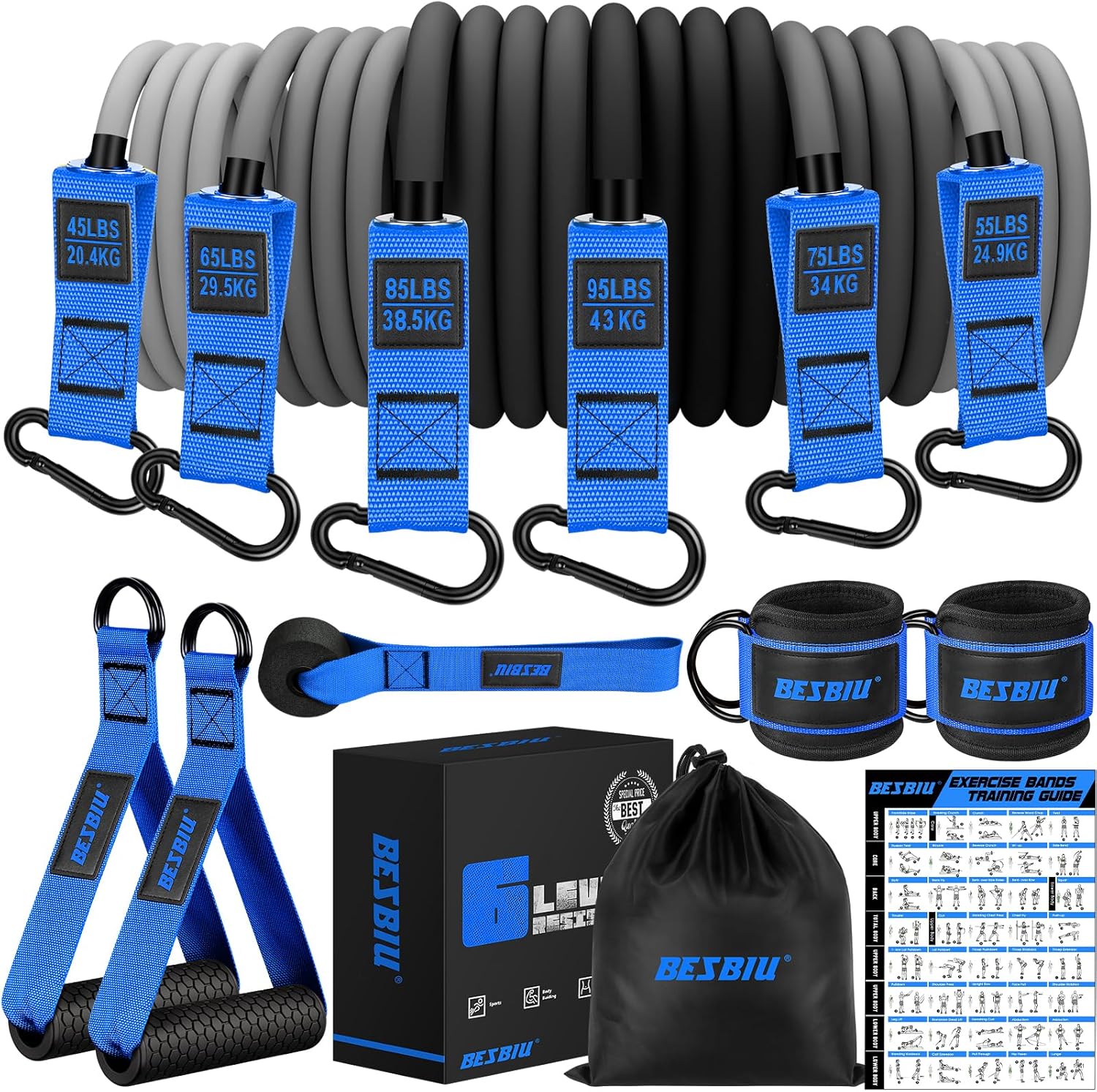 - SUPERIOR QUALITY EXERCISE BANDS: For maximum longevity and safety during use, the 47" long resistance bands are made of high-grade natural latex with high-density nylon webbing and sturdy heavy metal climbing carabiners that won't break or deform. Each tube fitness band is double-layered and carefully constructed to provide maximum resistance. making it more elastic and durable, safe, and reliable. Which can withstand intense daily exercise sessions and ensure your training goes perfectly.