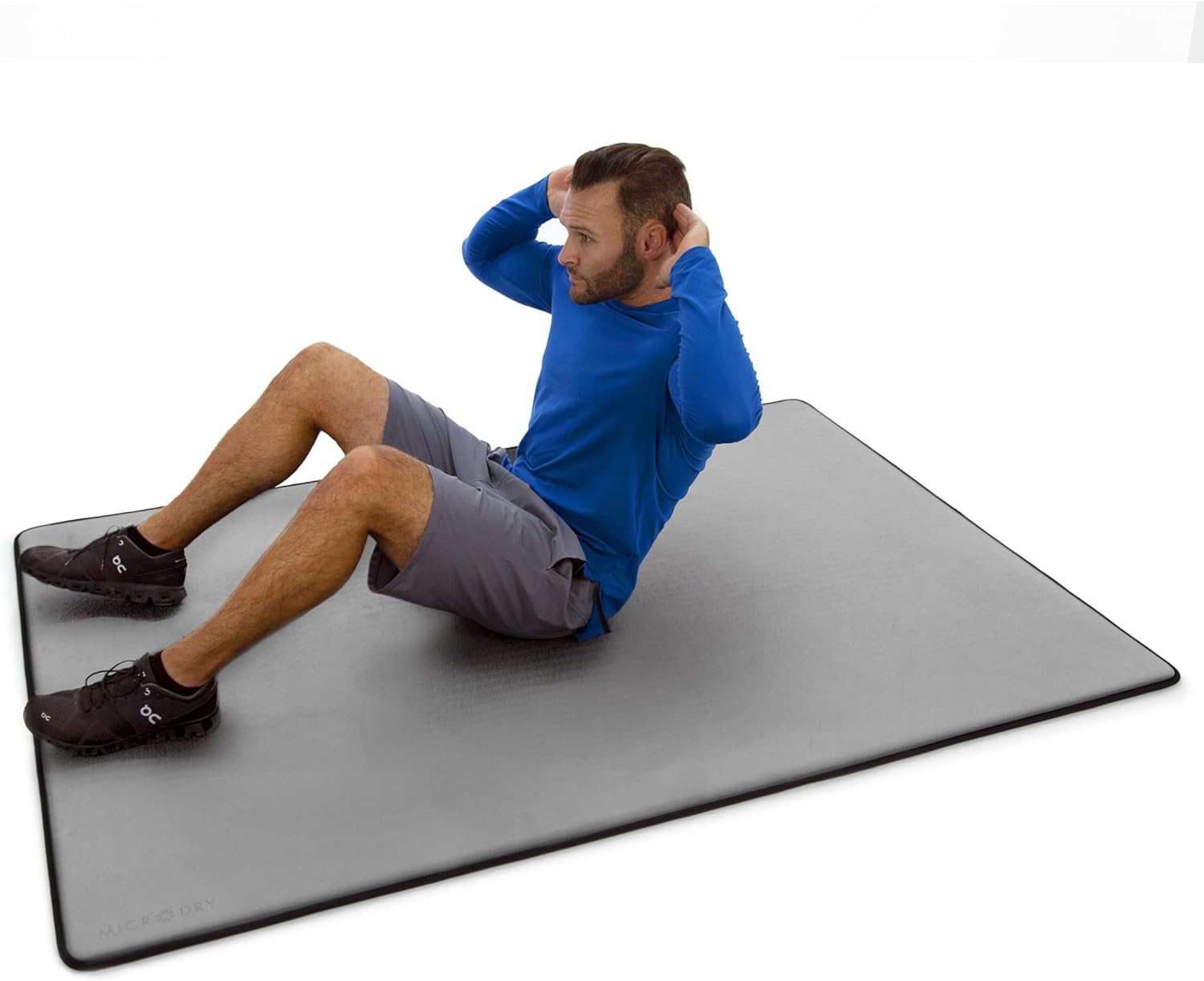 MICRODRY Deluxe Fitness Exercise Yoga Mat for Home & Gym, Extra Thick for High Impact Training, Multi Layered Skid Resistant Surface, Odor Neutralizing with Carrying Strap