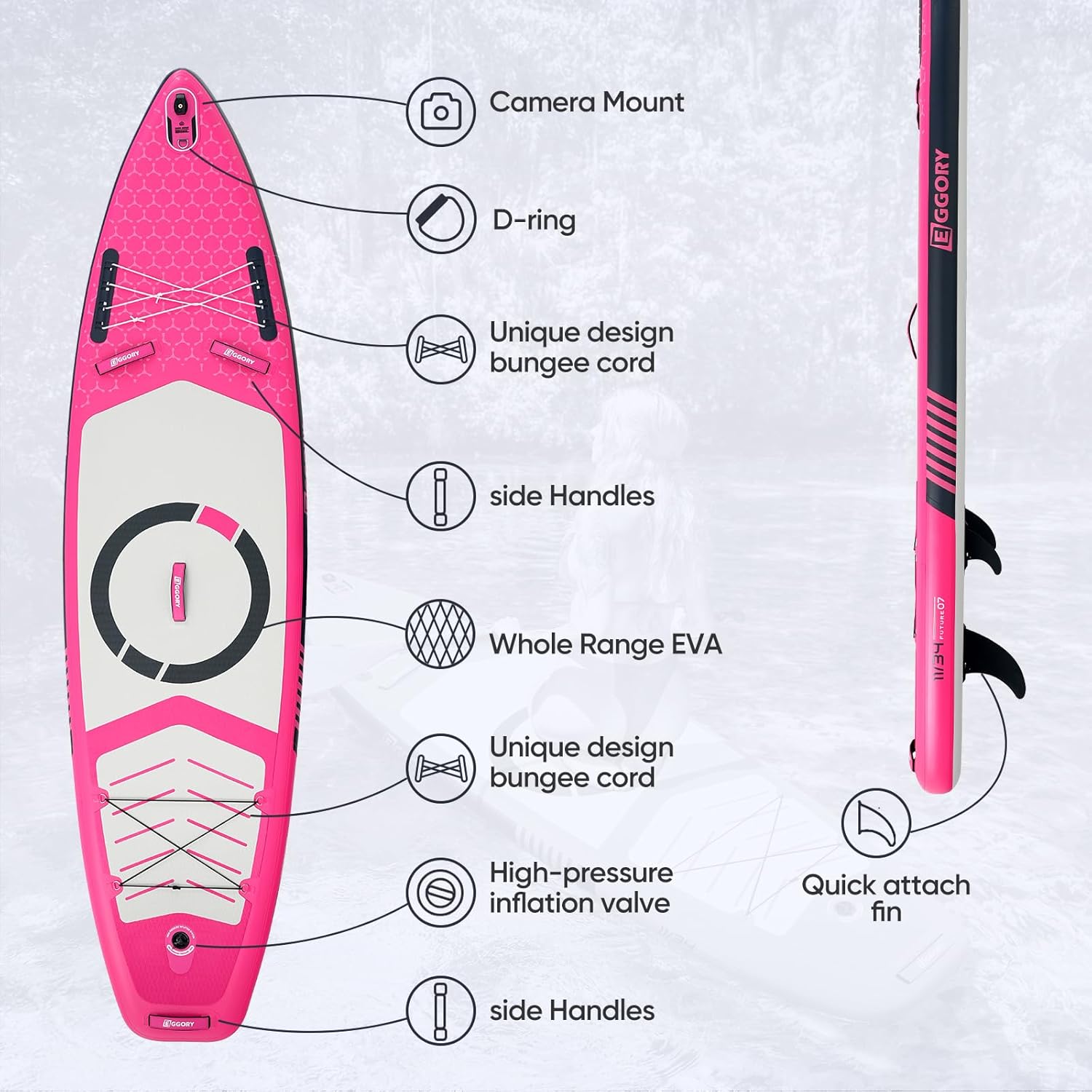 - Complete Premium Accessories : Includes an adjustable sup paddle, three detachable fins, safety leash, dual-action high-pressure pump, waterproof phone pouch, repair kit, user manual, and a large-capacity backpack. Multiple D-rings on the board allow for securing gear or connecting with other paddle boards