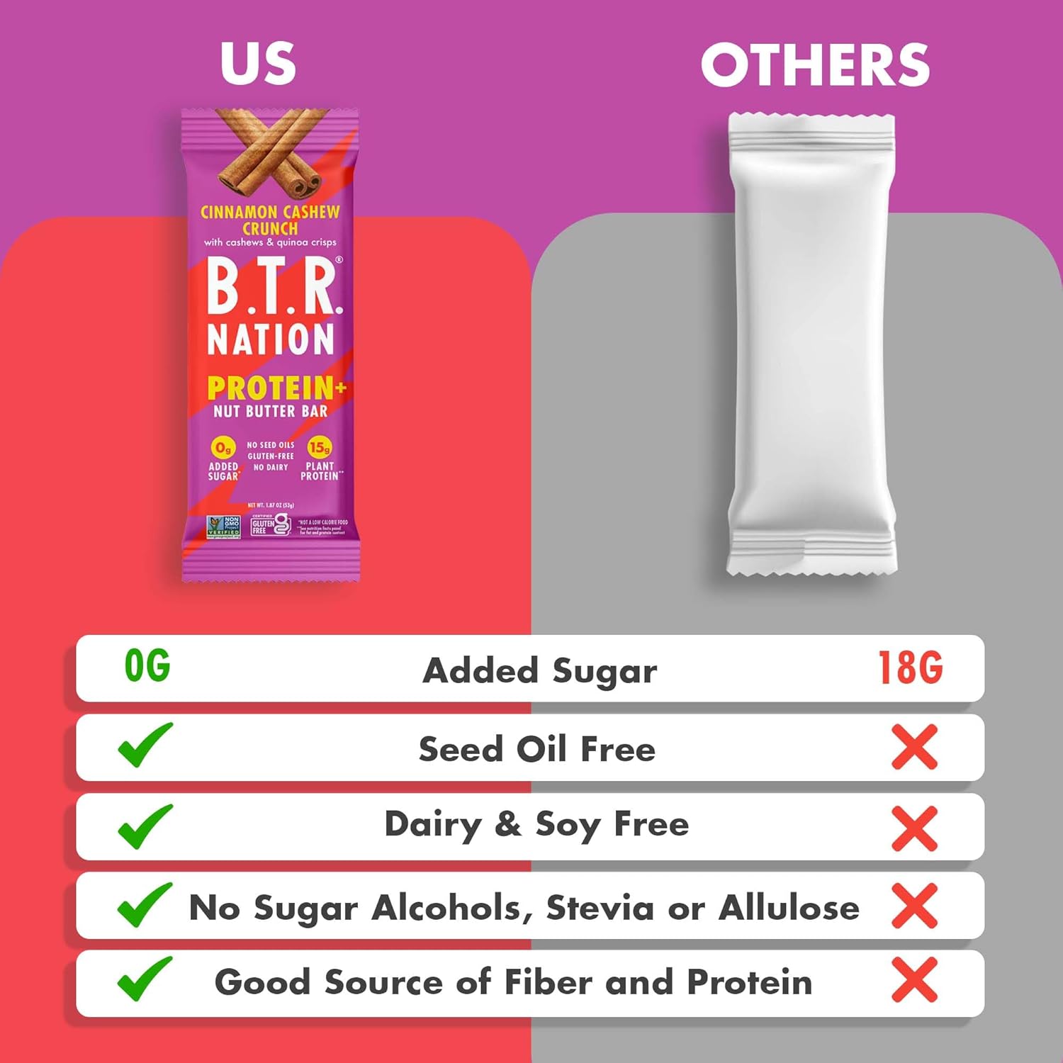 B.T.R. Nation Vegan Keto Plant Based High Protein & High Fiber Bars - Cinnamon Cashew Crunch Protein+ | 12 Bars | Low Carb & GF, Free of Sugar Alcohols, Dairy, Soy and with Powerful Superfoods!
