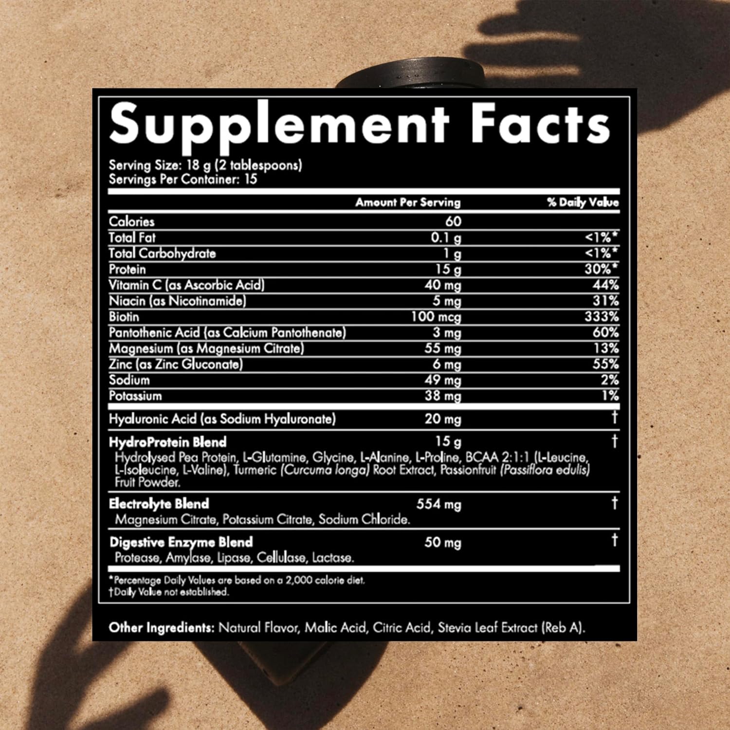 - Premium Plant-Based Protein & Hydration β Fuel your body with 15g of hydrolyzed pea protein per serve, combined with electrolytes, vitamins, and amino acids for optimal muscle support, hydration, and recovery.