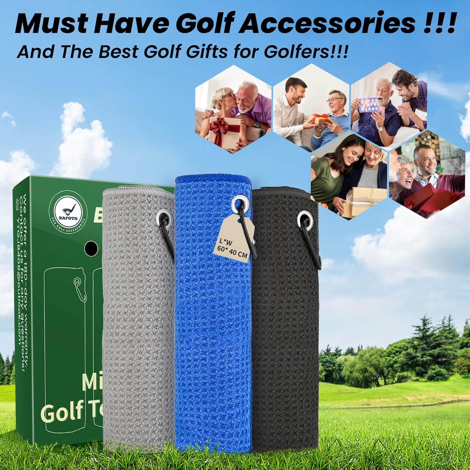- 【Must Have Golf Accessories and Gifts for Men Women】Keeping your gear clean is one of the most important parts of winning at golf! 3 golf club towel set will always keep you in top shape for every swing! Best for cleaning golf balls, golf clubs and grips, sweat