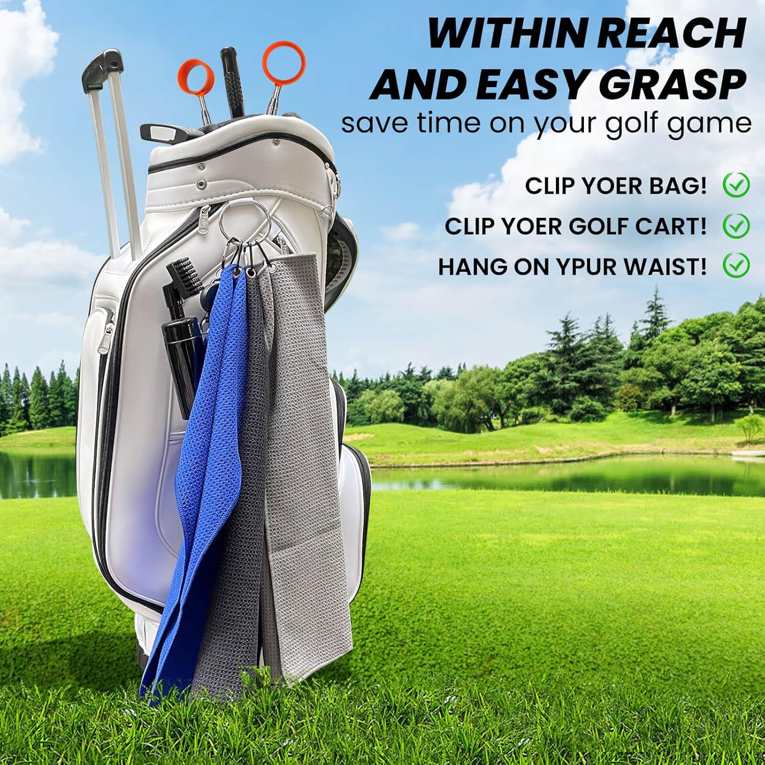 - 【Carabiner Clip for Instant Access】The heavy-duty carabiner clip stays secure on your bag, cart, or belt loop. Within reach and easy to grasp, save time on your golf game – no more fumbling for a towel mid-swing