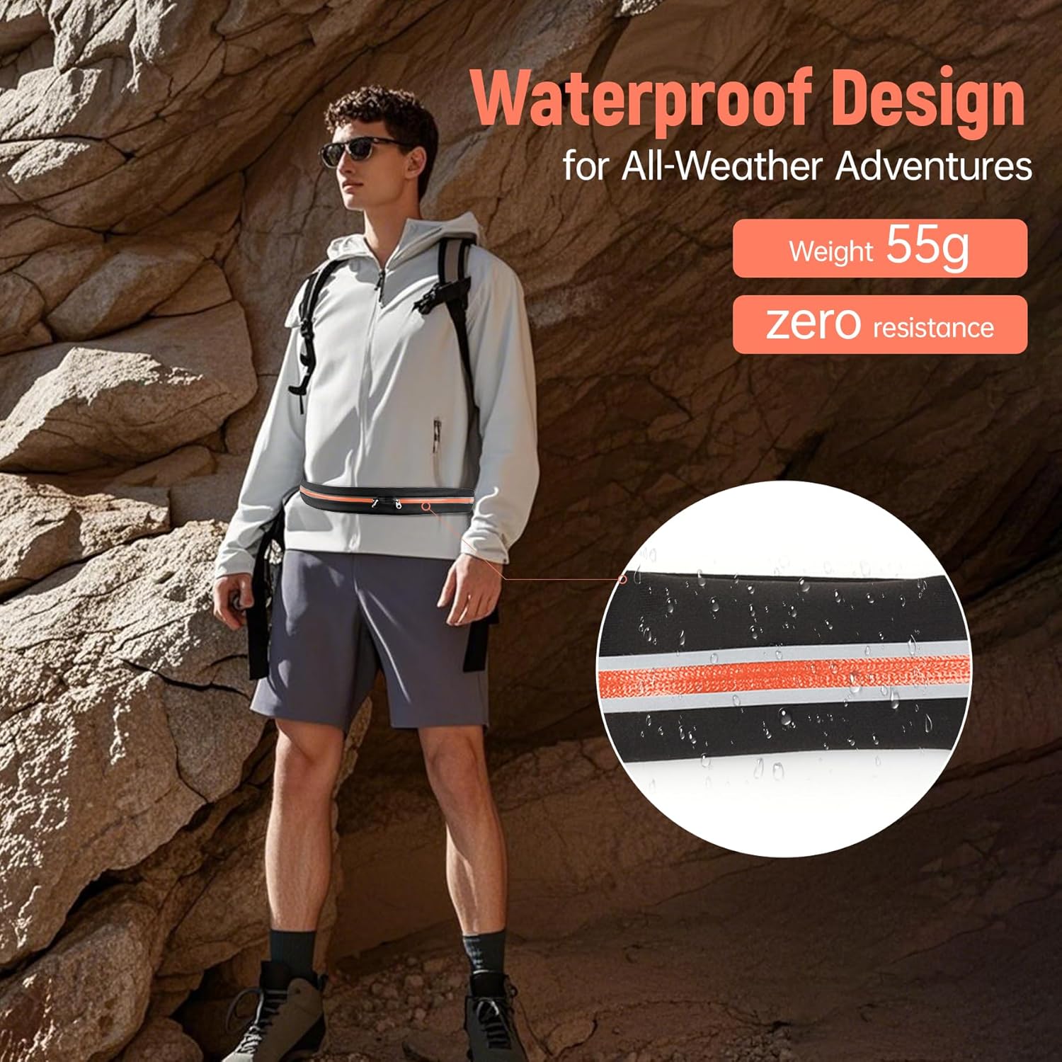 - ADJUSTABLE WAIST STRAP: Featuring elastic adjustable webbing, suitable for waist sizes ranging from 25 inches to 50 inches, it securely holds you in place while running.