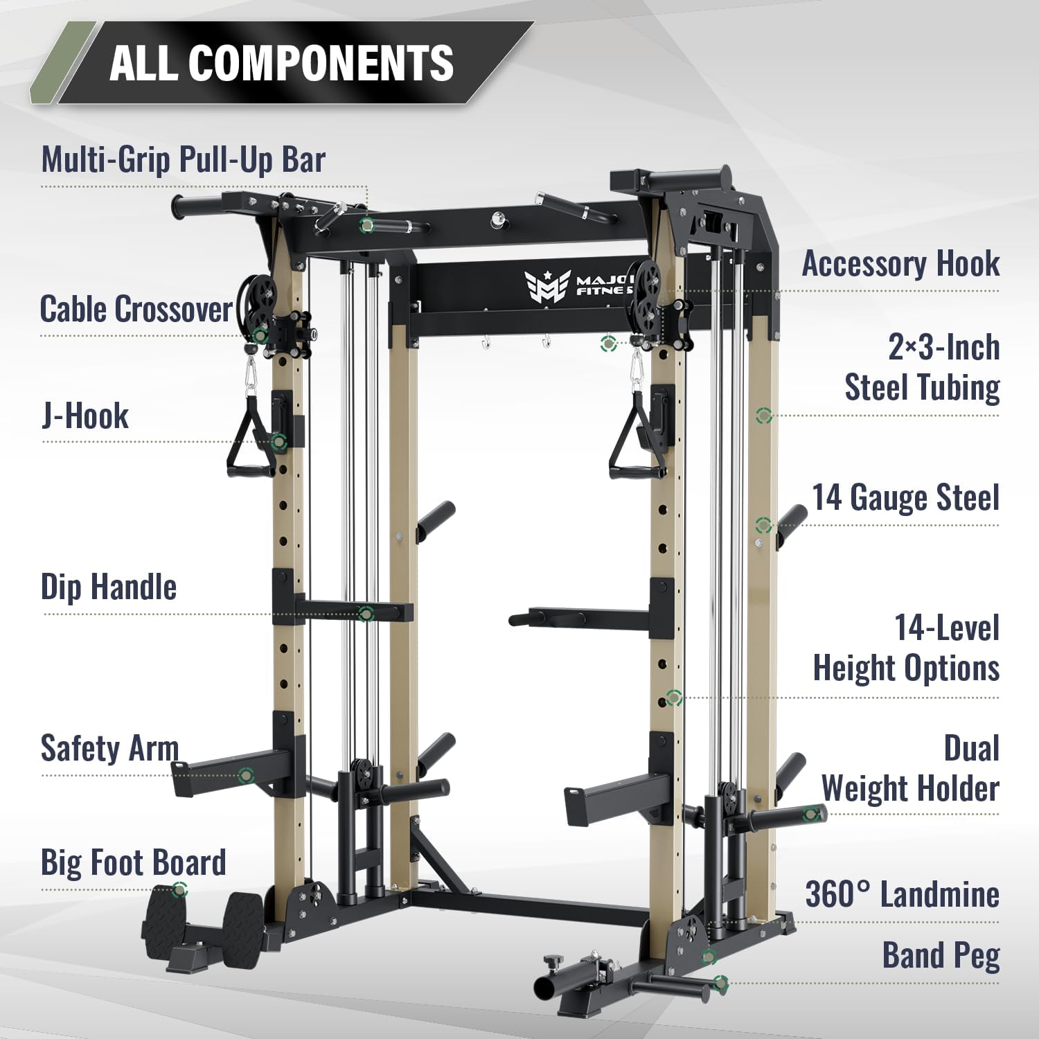 MAJOR FITNESS F22 Multi-Functional Power Rack—1600lbs Capacity All-in-One Squat Rack with Dual Pulley System for Home Gym Strength Training