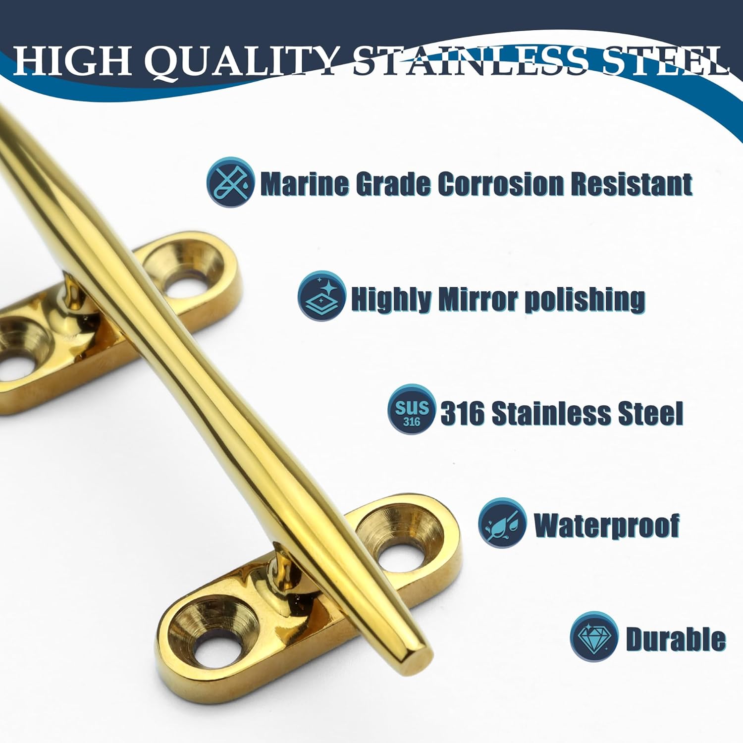 SHENGHUISS Boat Cleat 316 Stainless Steel Open Base Boat Dock Cleats(4"/5"/6"/8"/10"/12") Silver/Gold for Boat, Dock, Kayaks, Nautical Decor ect