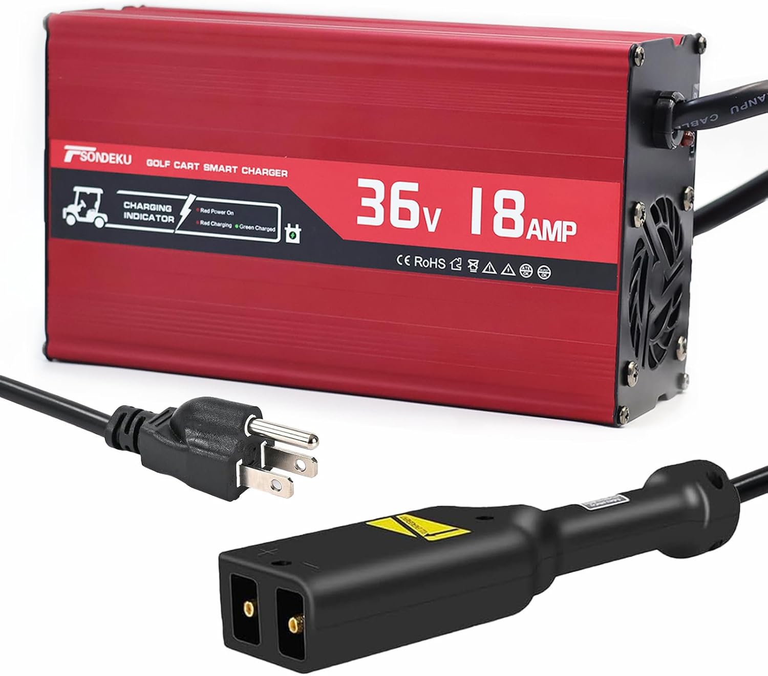 - Stylish and Durable Design: The sleek, deep red aluminum casing not only adds a touch of elegance but also provides durability. The 36 volt ezgo charger is built to last, making it a reliable and stylish addition to your golf cart setup.