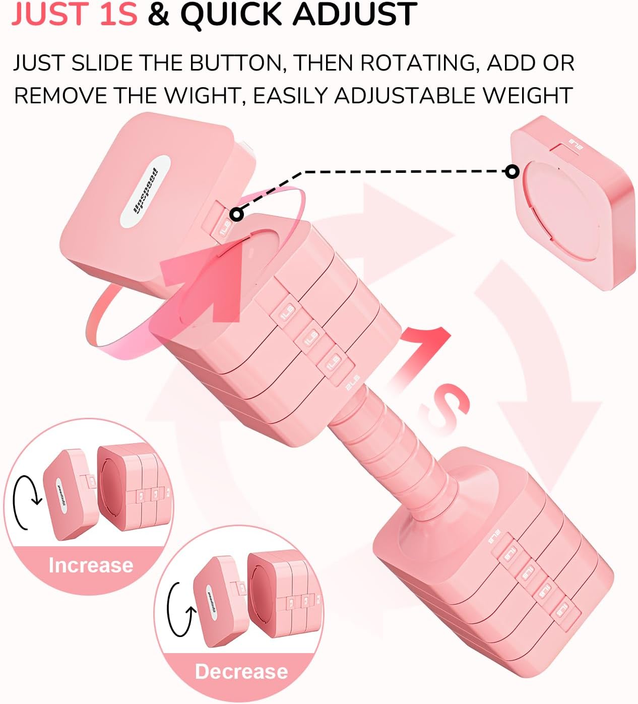 - The mechanism to connect and disconnect the additional weighted pieces are simple to use and twist into place, pink dumbbell sets for women can be quickly to adjust for more or less weight.