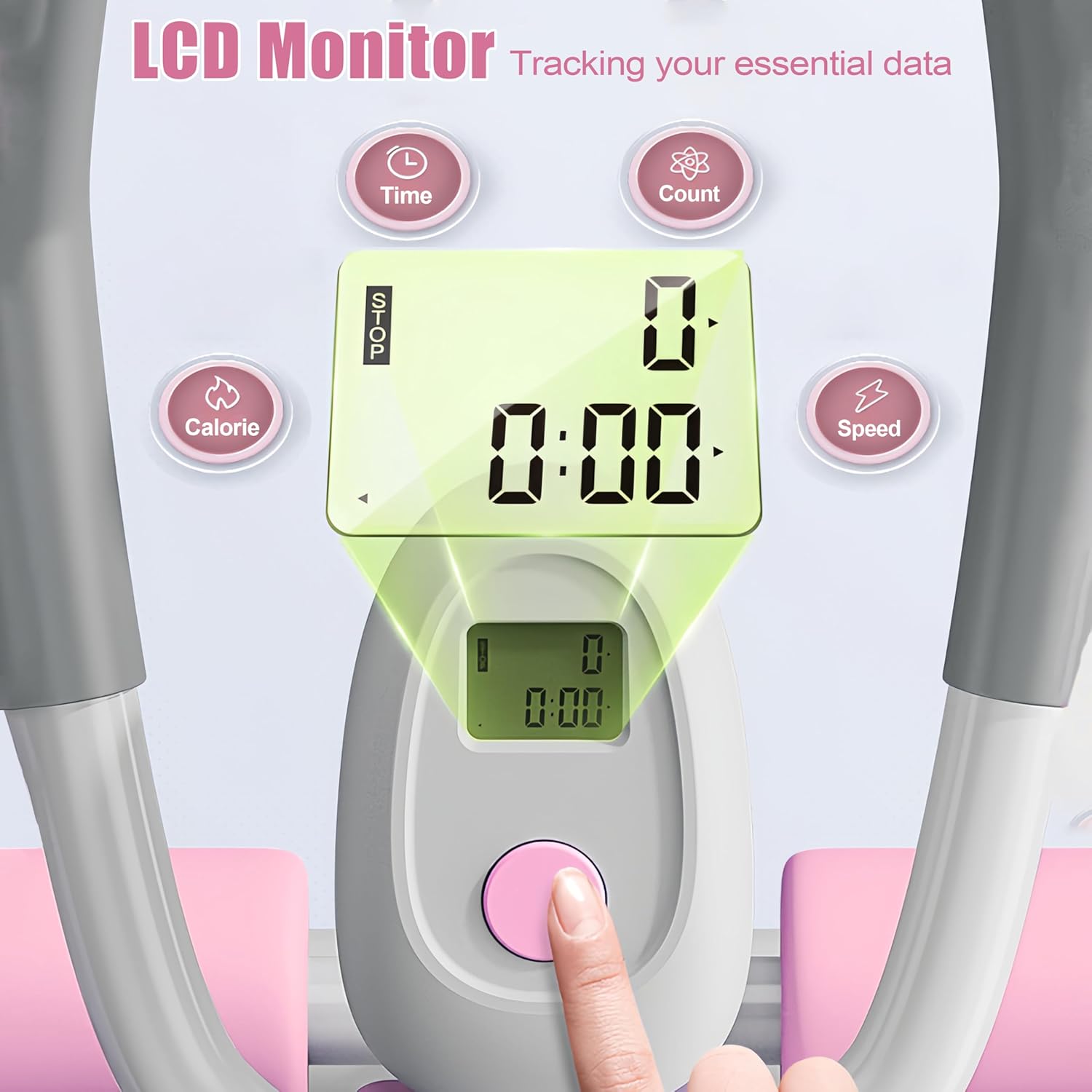 - 【Digital LCD Display and Easy Storage】: The digital LCD display tracks calories, workout time, and repetitions, while the foldable design allows for easy storage under the bed or against the wall, saving space.