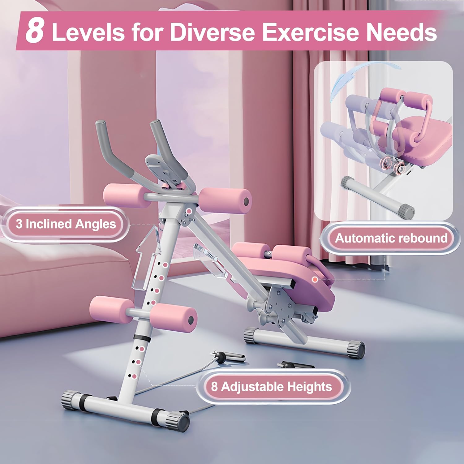 - 【Adjustable Resistance and Height Levels】: With adjustable height, every level gets tougher. The higher the setting, the more resistance you feel—helping you build strength faster. The ab workout equipment accommodates different fitness levels, from beginners to experts, allowing users to easily customize their workout intensity.