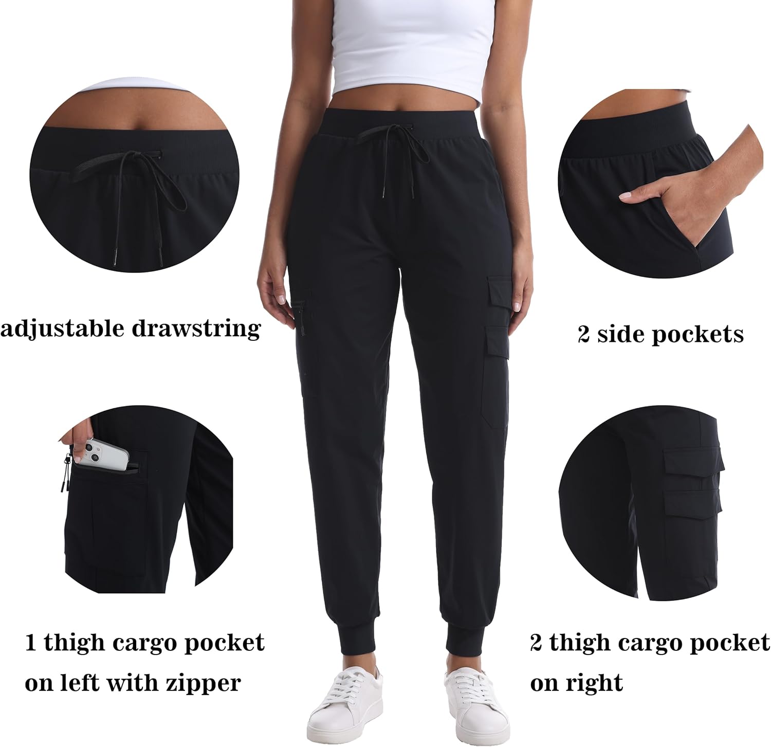 Women's Lightweight Hiking Joggers with Pockets - Water Resistant Cargo Pants for Outdoor Workouts Camping
