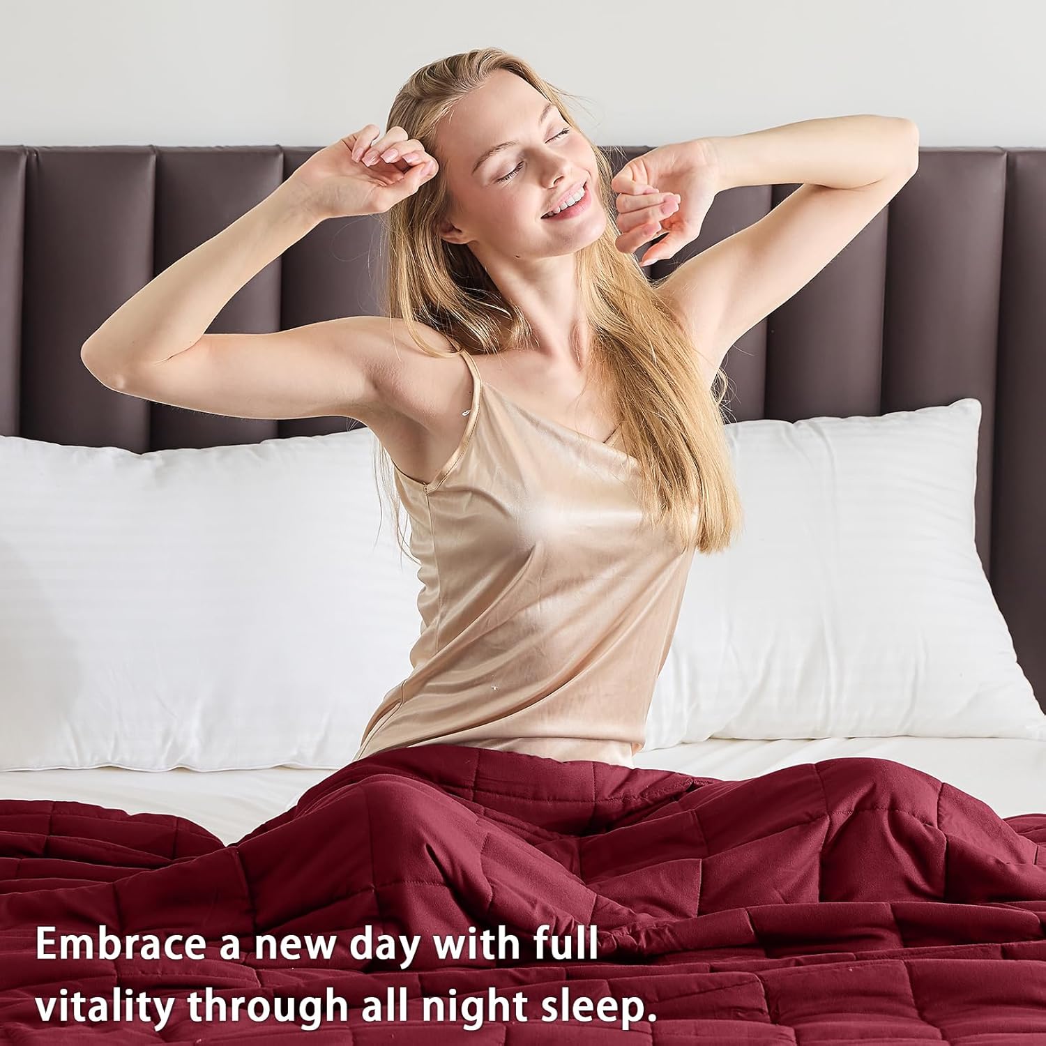yescool Weighted Blanket for Adults (17 lbs, 60" x 80", Red Grey) Cooling Heavy Blanket for Sleeping Perfect for 110-130 lbs, Queen Size Breathable Blanket with Premium Glass Bead, Machine Washable