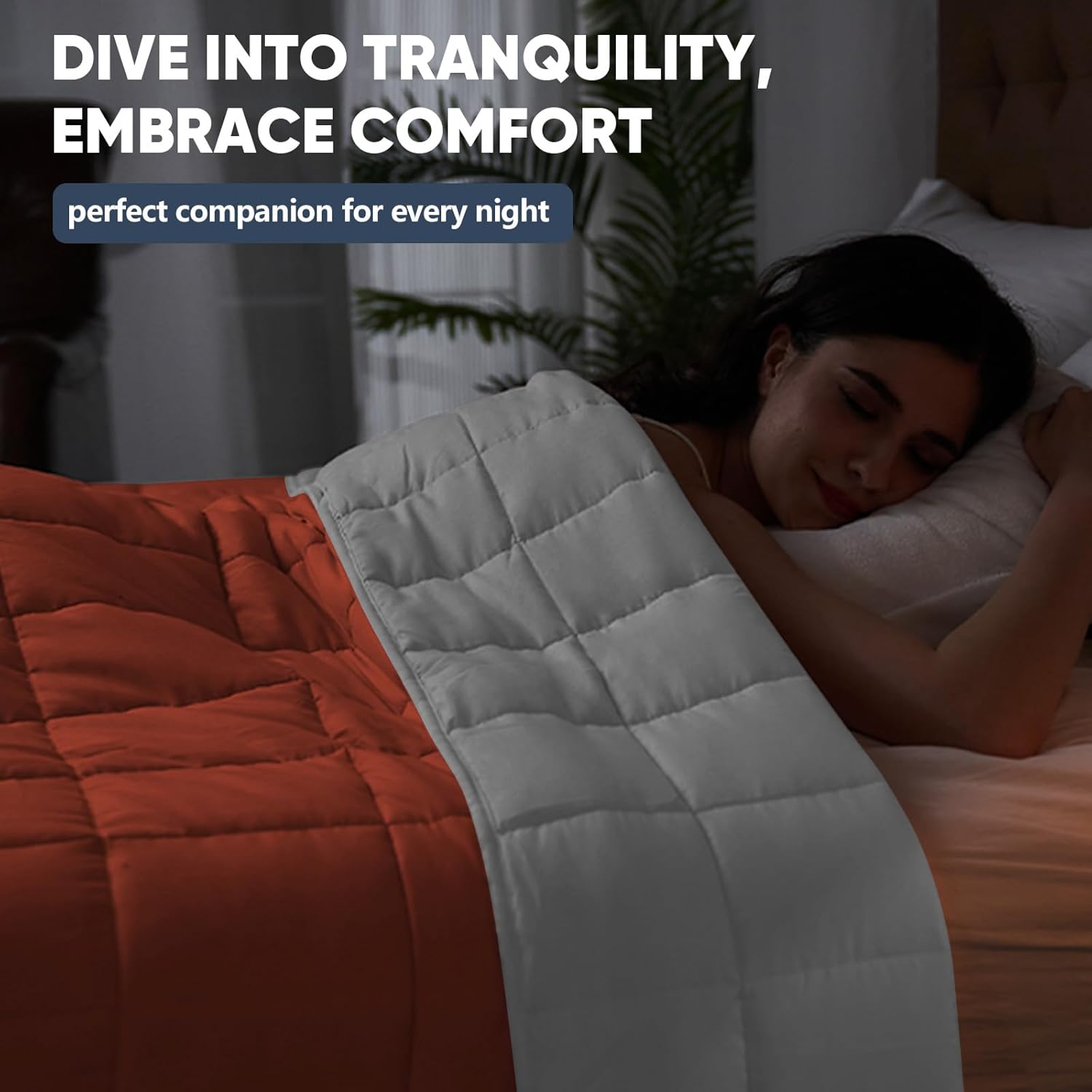 - 🌙【TIGHTLY STITCHING&DURABILE】: Our weighted blanket for women & man composed of 5"x5" small enough compartments stitched by high-density 15000 stitches.This ensures that the glass beads stay evenly distributed and securely contained, preventing any movement or leakage, and no noise when moving the body, giving you a comfortable sleep.