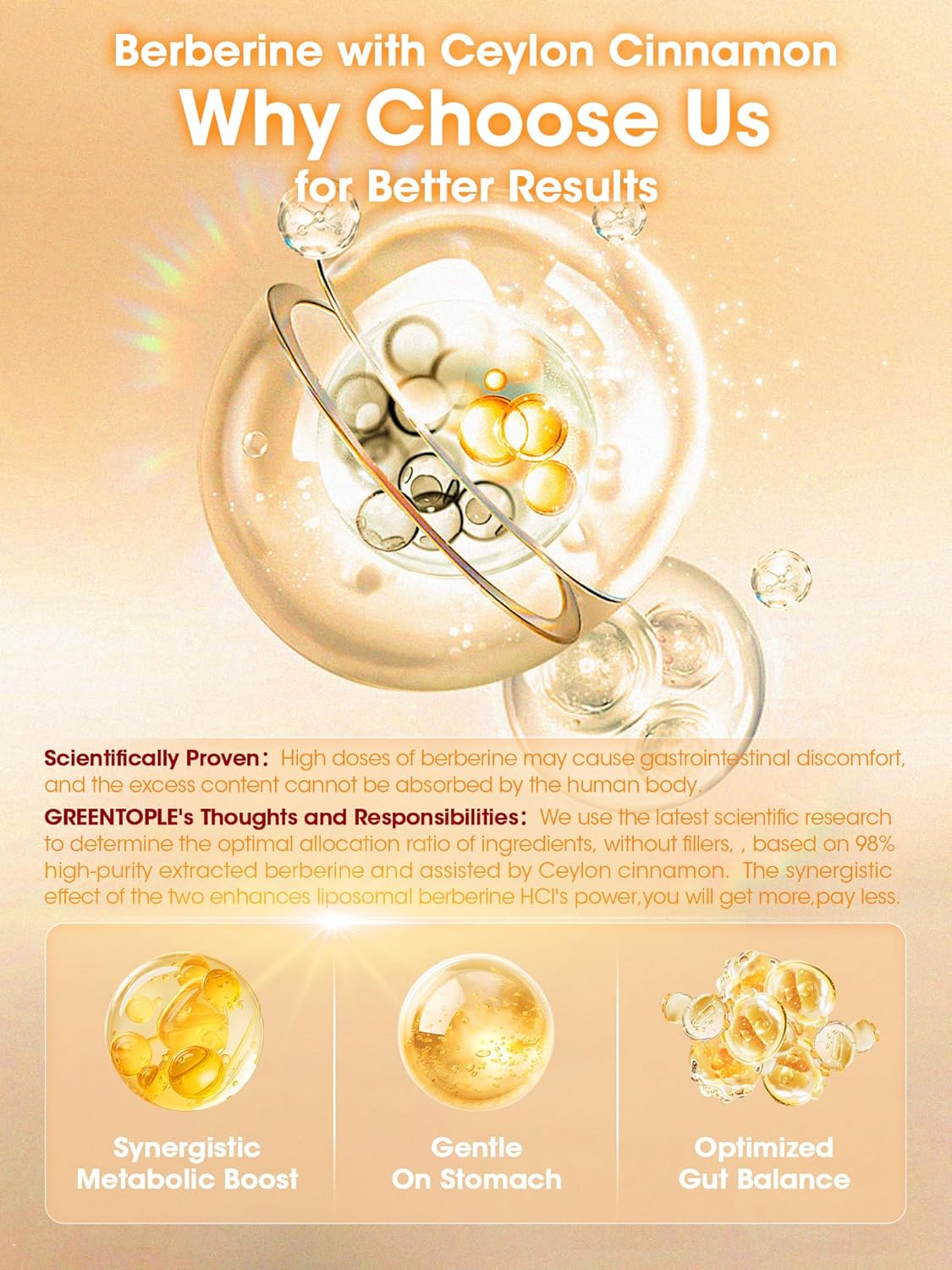 - Berberine Supplement: Daily intake of 500-1500 mg of berberine can provide significant health benefits.Our liposomal berberine HCl capsules use highly concentrated liposomal technology and are synergistically formulated with Ceylon Cinnamon to provide gut-friendly,stomach-friendly effects