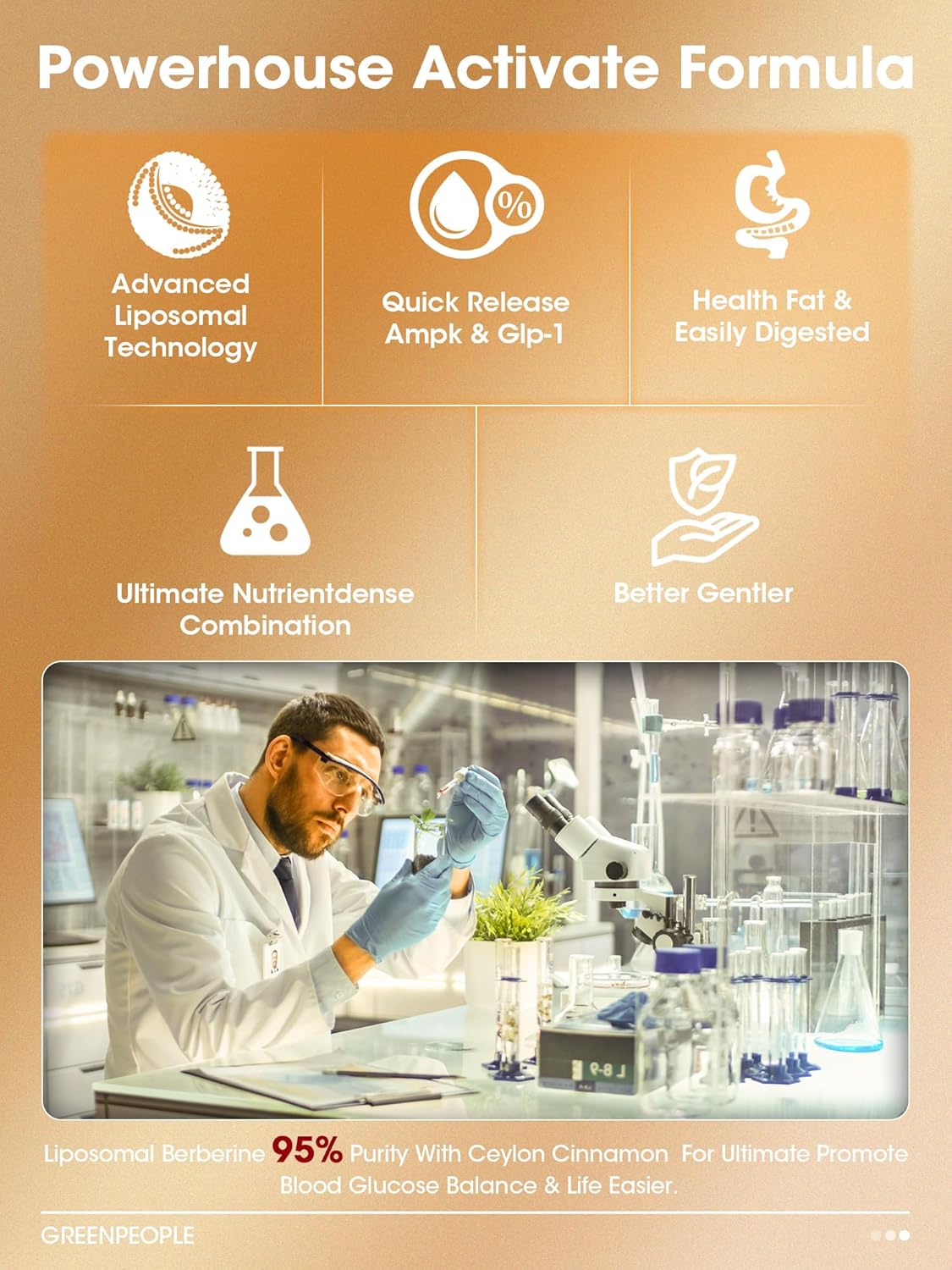 Liposomal Berberine HCL1300mg - Berberine Supplement with Ceylon Cinnamon Activates GLP-1 & AMPK - High Absorption Formula Healthy Weight Support – Non-GMO/Vegan – 30-Day