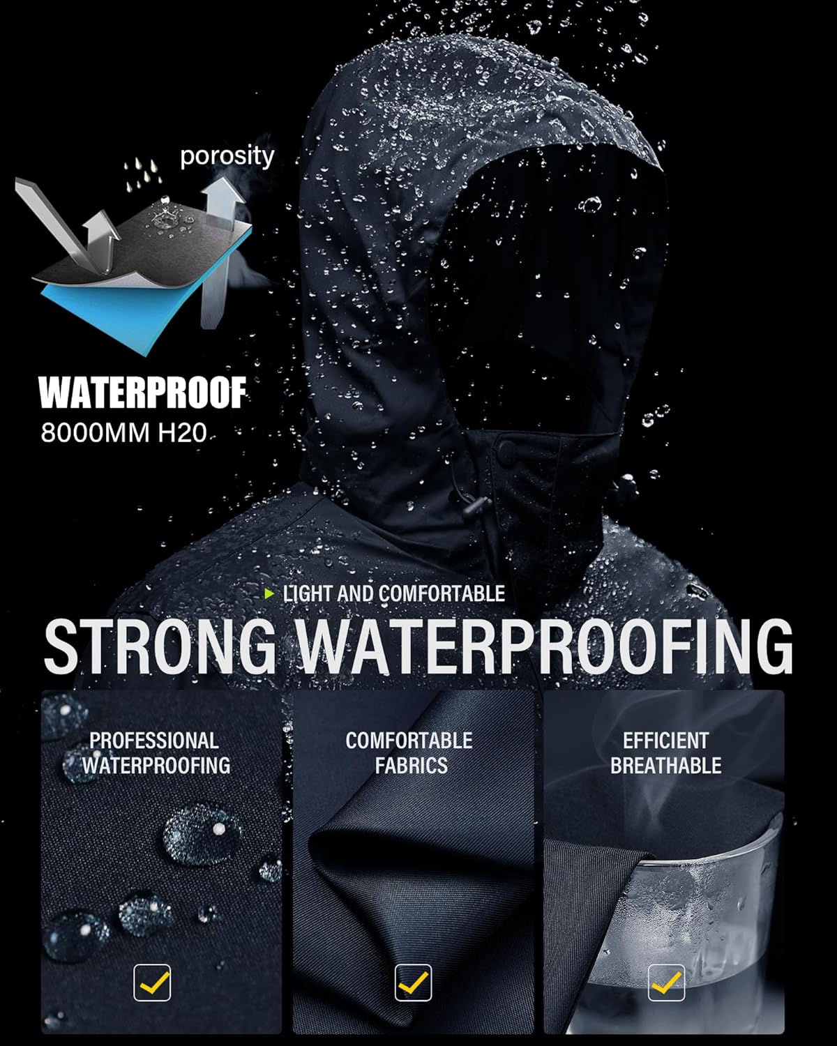 - Multipurpose: This waterproof rain jacket with hood is a great gear for your outdoor activities. It is perfect for outdoor work, traveling, cycling, hiking, climbing, fishing, camping, hunting and for daily wear