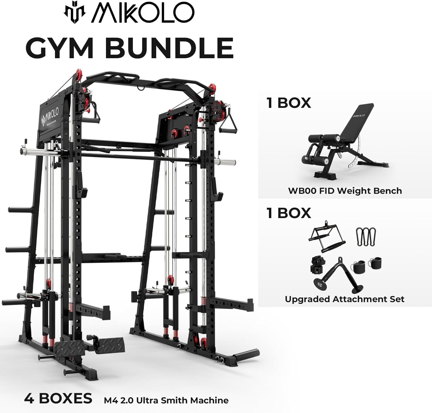 Mikolo Smith Machine, 2200lbs Squat Rack with LAT-Pull Down System & Cable Crossover Machine, Training Equipment with Leg Hold-Down Attachment