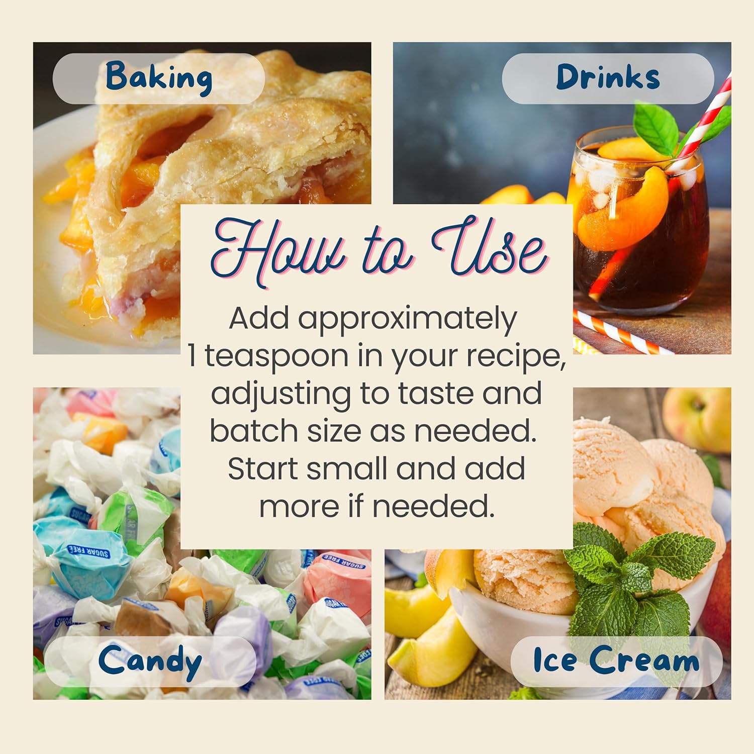 - YOUR PACKAGE INCLUDES: A 2 oz glass bottle of premium, water-soluble natural peach flavor, handcrafted with quality ingredients right here in the USA.