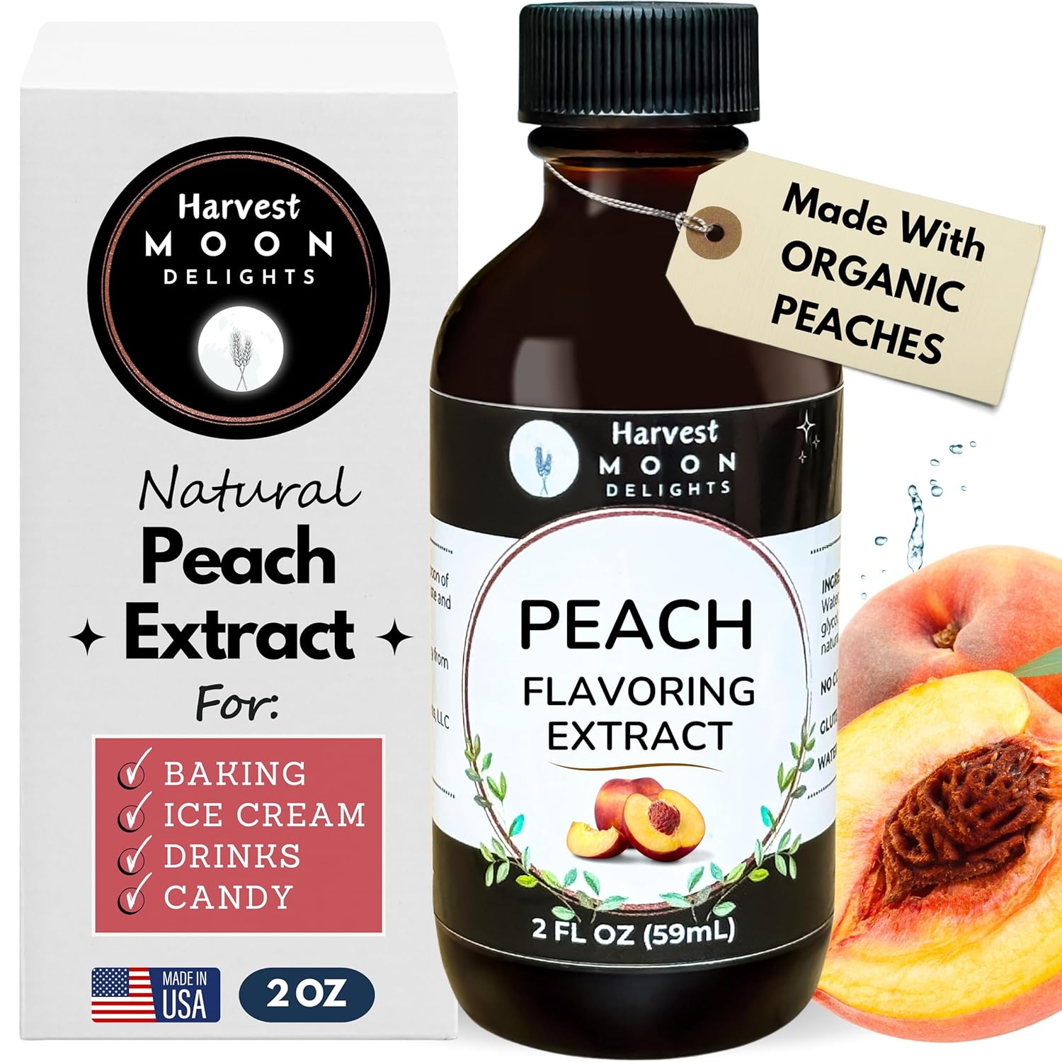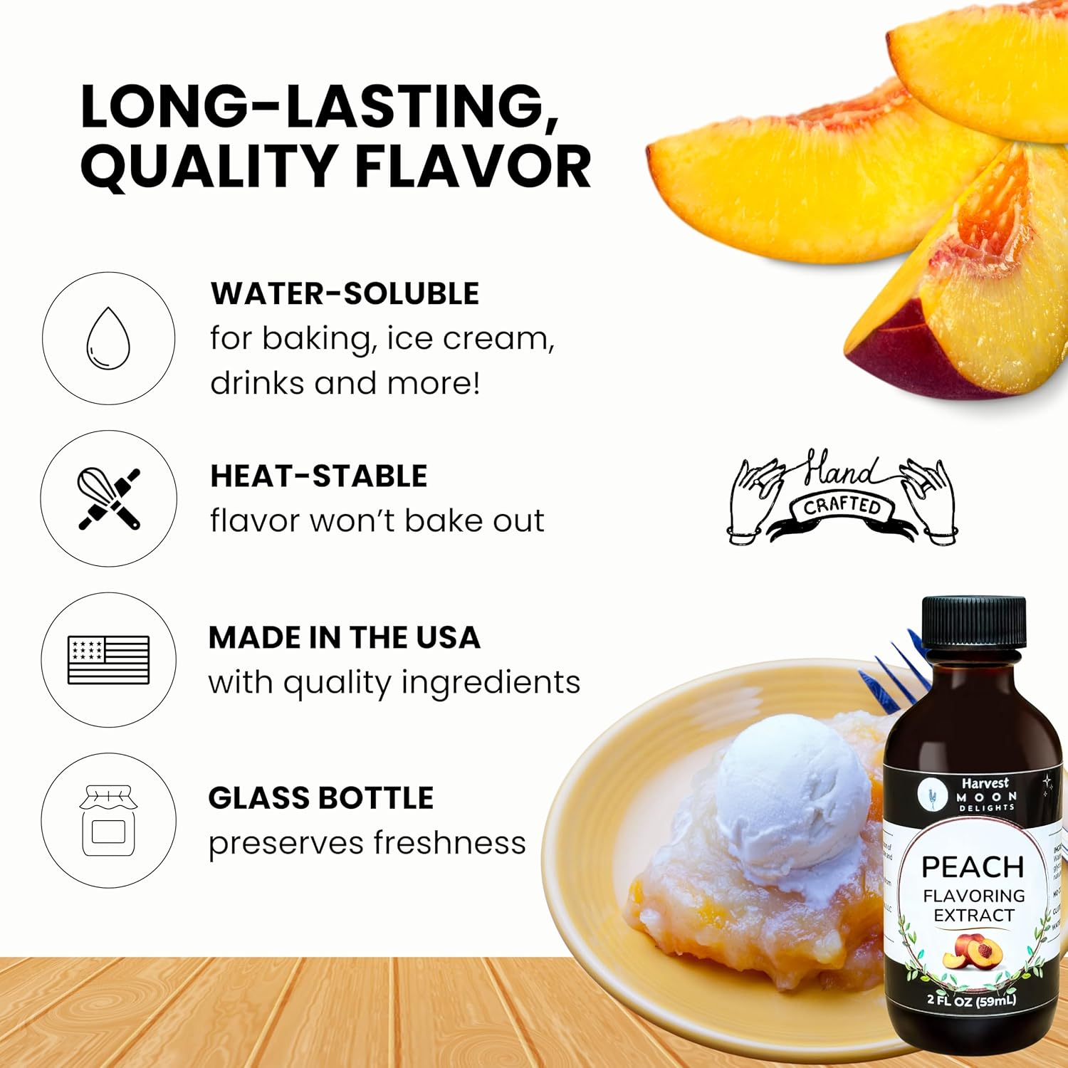 Natural Peach Extract - 2 oz - Water-Soluble - By Harvest Moon Delights - Peach Extract for Baking, Ice Cream, Drinks, and Candy - Sugar Free