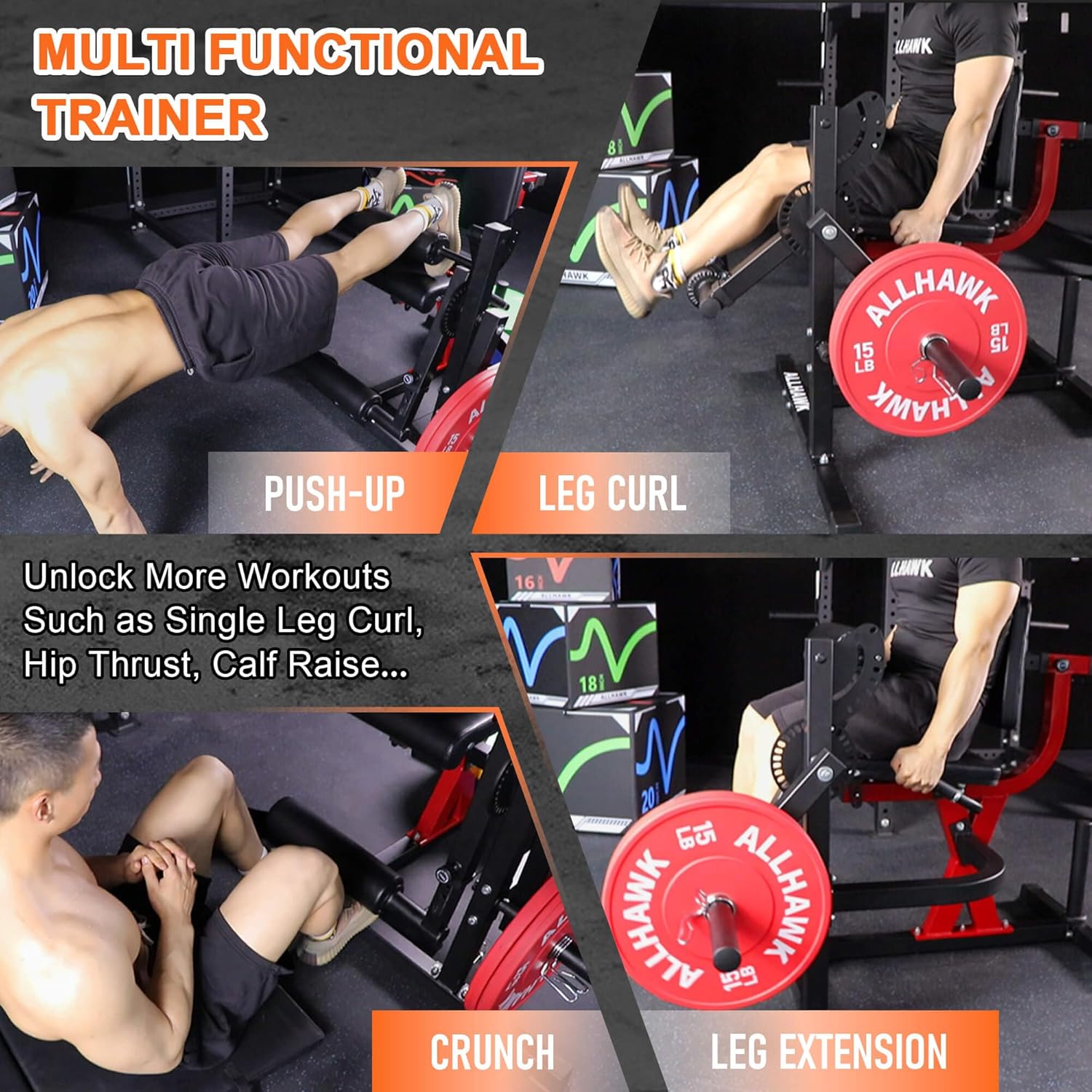 - 【Targeted at Leg Muscles】: Engineered for leg extension, leg curl and glute bridge that target your hip, hamstring and thigh muscles. Allhawk leg exercise machine support intense resistance training to help unleash your power.
