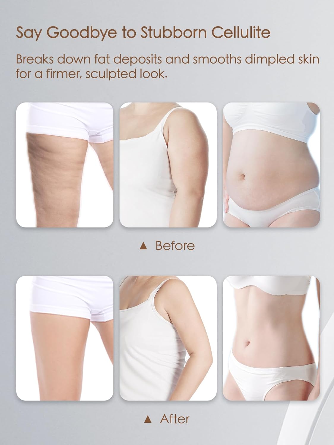 - Anti-Cellulite Technology โ Smooth & Tighten Your Skin: This cellulite massager combines light, heat, vibration, and SoothingPulse to target stubborn cellulite & stretch marks. It boosts circulation, enhances collagen production, and improves skin elasticity, leaving you with firmer, more toned, and smoother skin. Ideal for legs, arms, stomach, thighs & waist.