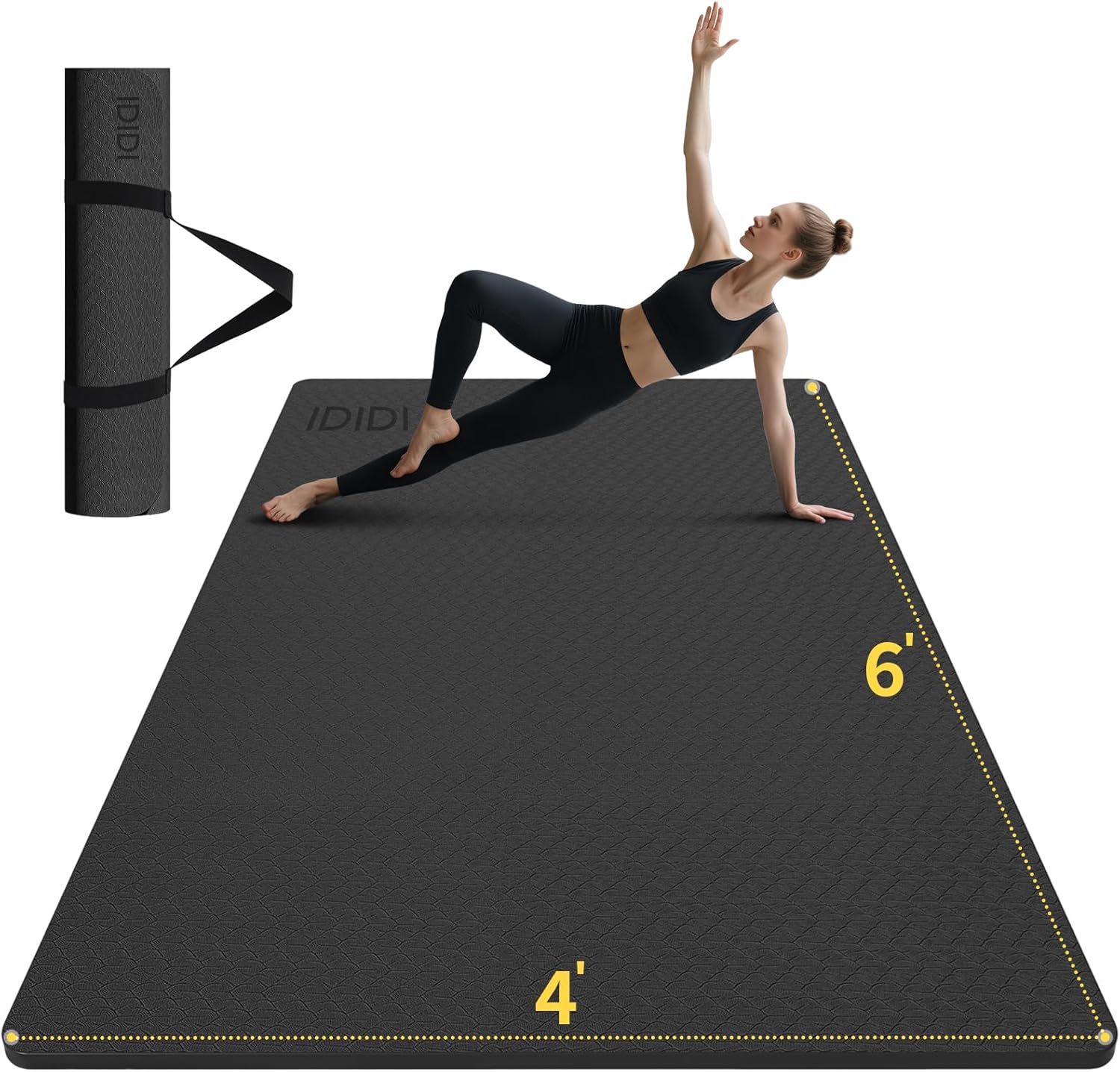 10mm Large Yoga Mat (6'x 4') - Extra Long and Wide 72 x 48 x 0.4 inches, Non-Slip POE Fitness Mat, Eco-Friendly, Thick Wide Exercise Mat for Home Workouts,Ideal for Yoga and Pilates.