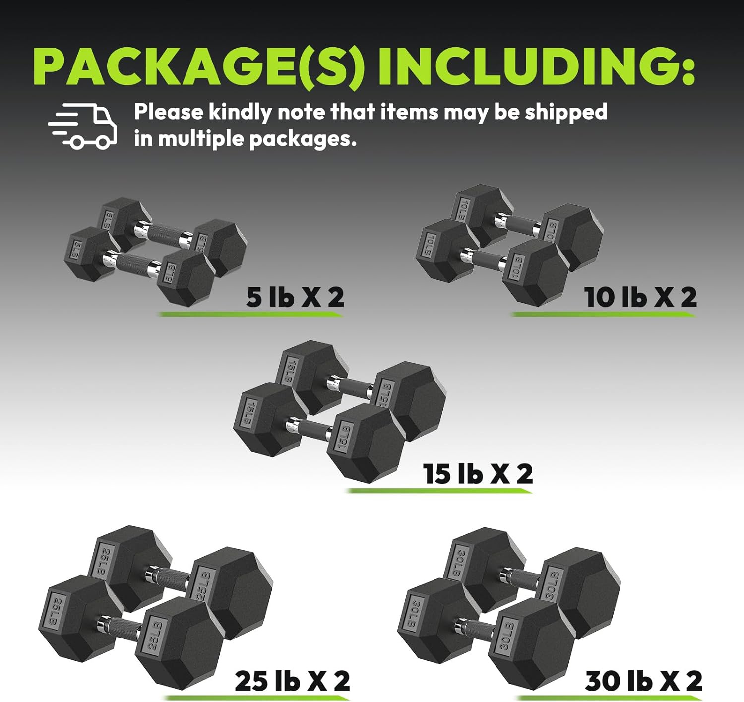 Hex Dumbbell 45-480 lb Set, Rubber Encased Exercise & Fitness Dumbbells for Home Gym, Hand Weights for Strength Training